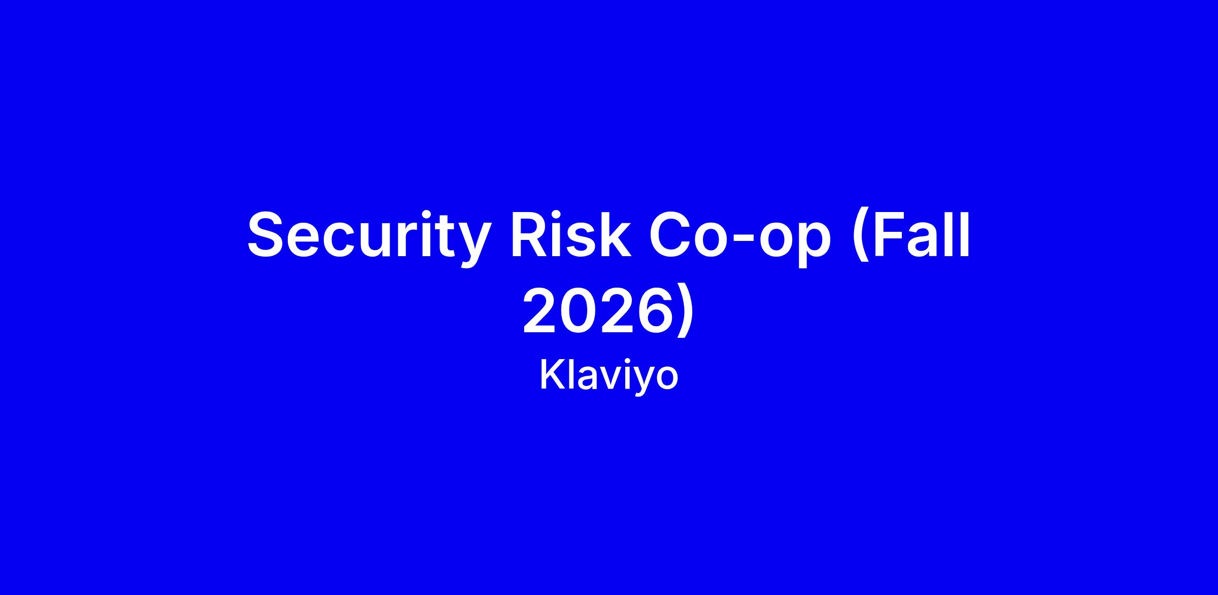 As a Security Risk Co-op, you will assist in the daily operations of the team as well as support key projects to achieve our 2026 goals. This person will work closely with the larger Information Security team and will collaborate with other Klaviyos in Information Technology, Product Management, Legal, Software Engineering, and more.
