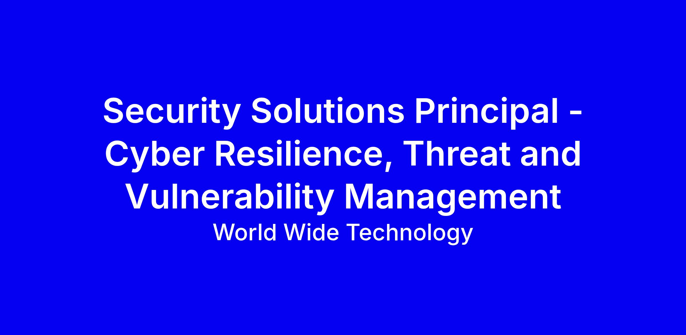 World Wide Technology seeks a Security Solutions Principal specializing in Cyber Resilience and TVM to lead strategy and delivery for clients. The role blends designing resilience frameworks, risk and vulnerability assessments, incident response and continuity planning with leadership of delivery teams. You will develop strategic business cases, own statements of work, educate account teams, and drive revenue growth while aligning with regulatory standards. Requirements include a bachelor’s degree in computer science or security, 10-15 years in cybersecurity with proven leadership, and certifications such as CISSP, CISM or CISA. To apply, tailor your CV to show measurable impact, highlight cross-functional collaboration, and connect your experience to client outcomes and WWT’s culture of innovation.