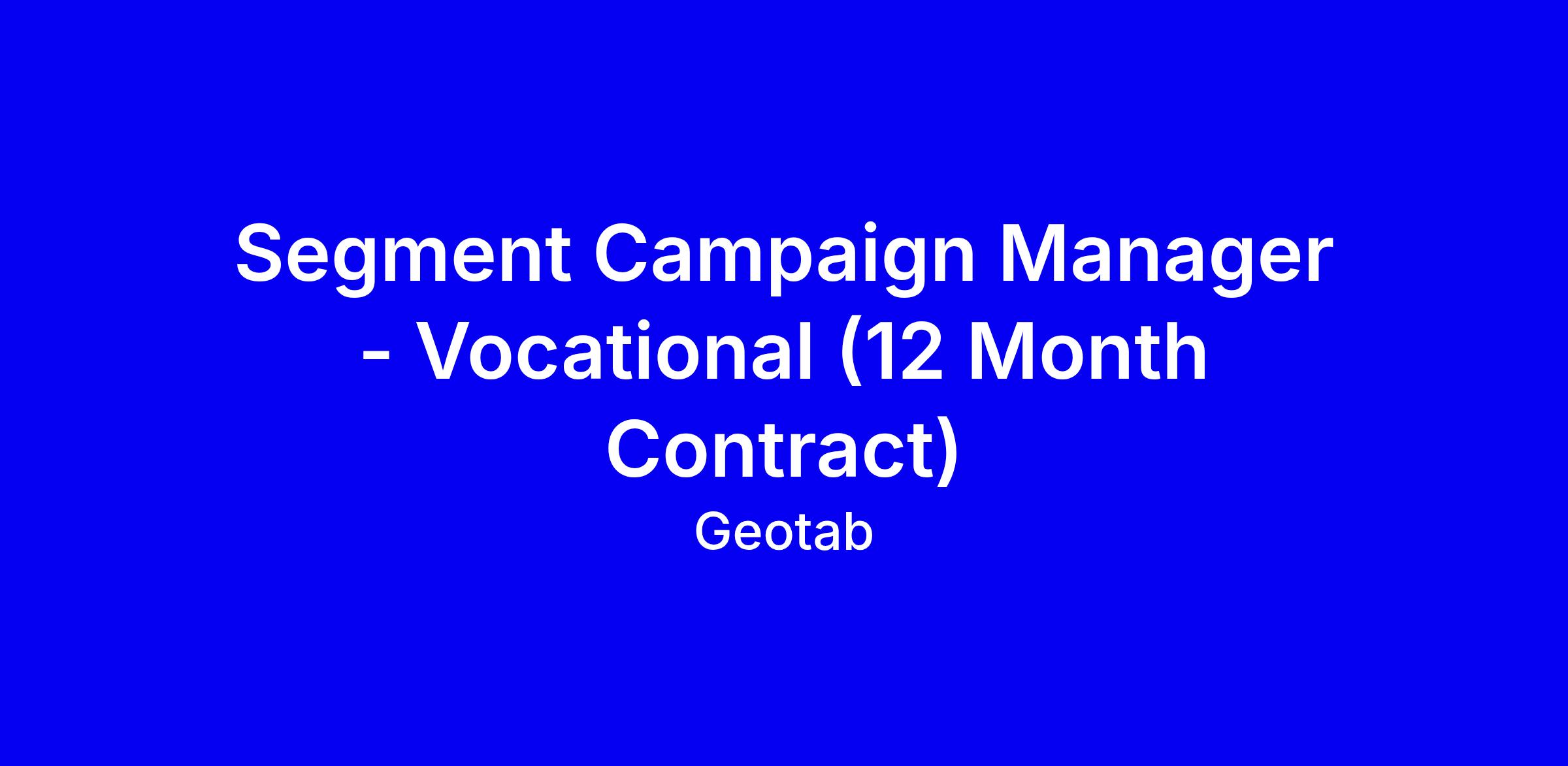 We are always looking for amazing talent who can contribute to our growth and deliver results! Geotab is seeking a Segment Campaign Manager who will spearhead the development and execution of high-impact, integrated segment marketing campaigns that directly contribute to achieving revenue objectives. The projects will vary in scope, complexity, and affected business area. If you love technology, and are keen to join an industry leader — we would love to hear from you!