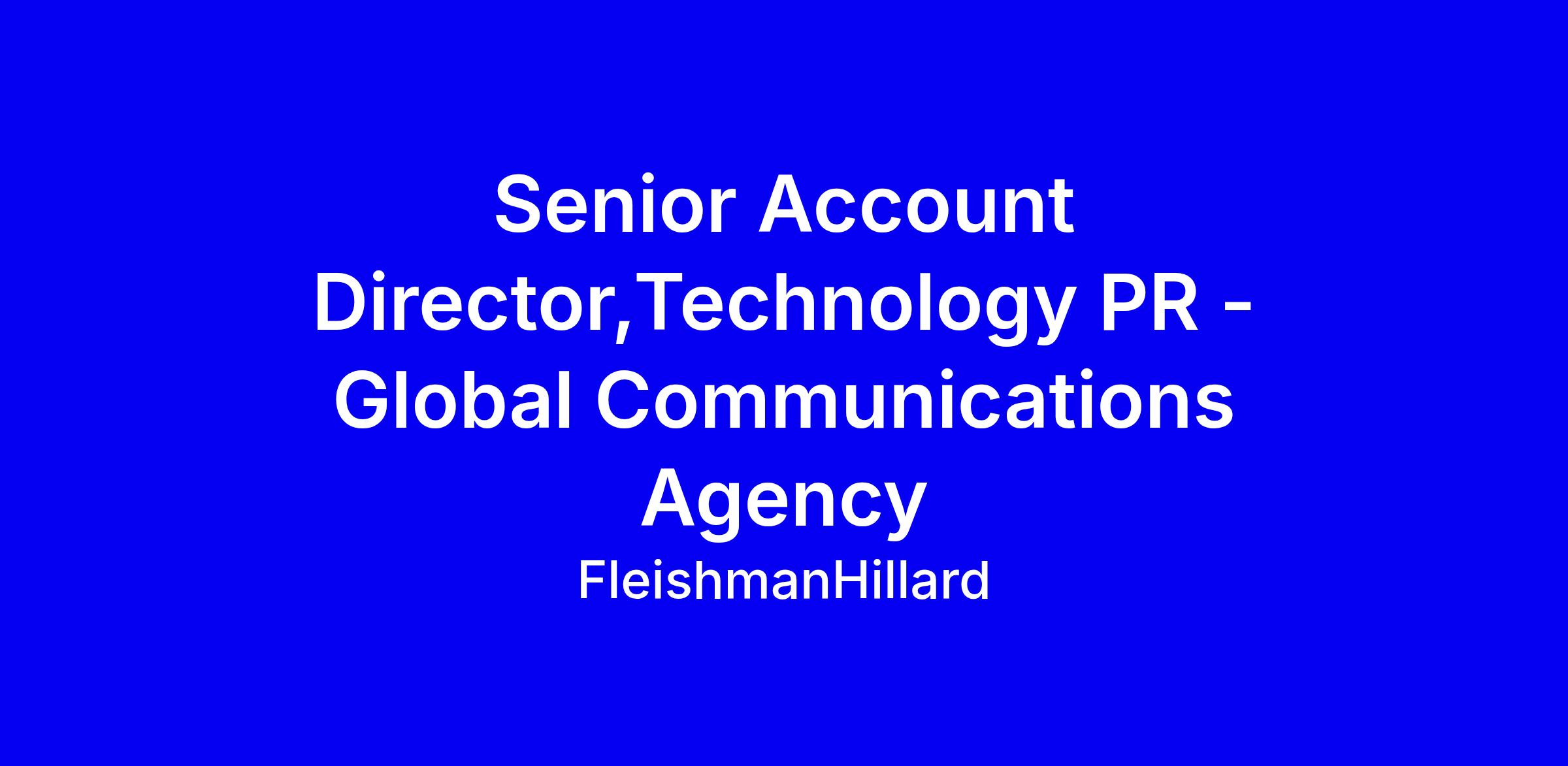 FleishmanHillard is seeking a Senior Account Director for Technology PR to lead integrated, multi market programmes for flagship global clients, reporting to a senior Director. The role demands strategic B2B tech storytelling, top tier media and influencer relationships, and hands on leadership across UK and international activations including media relations, crisis comms, executive profiling, content and events. You’ll drive new business, manage budgets, and mentor junior colleagues while contributing to thought leadership in FH’s technology practice. The ideal candidate has strong agency B2B tech experience, a track record with tier 1 media, and an interest in AI and data analytics; must have UK work rights and be in Bankside three days a week. Apply with metrics driven examples of campaigns, a concise why FH note, and evidence of inclusive leadership; we may not respond to every applicant.