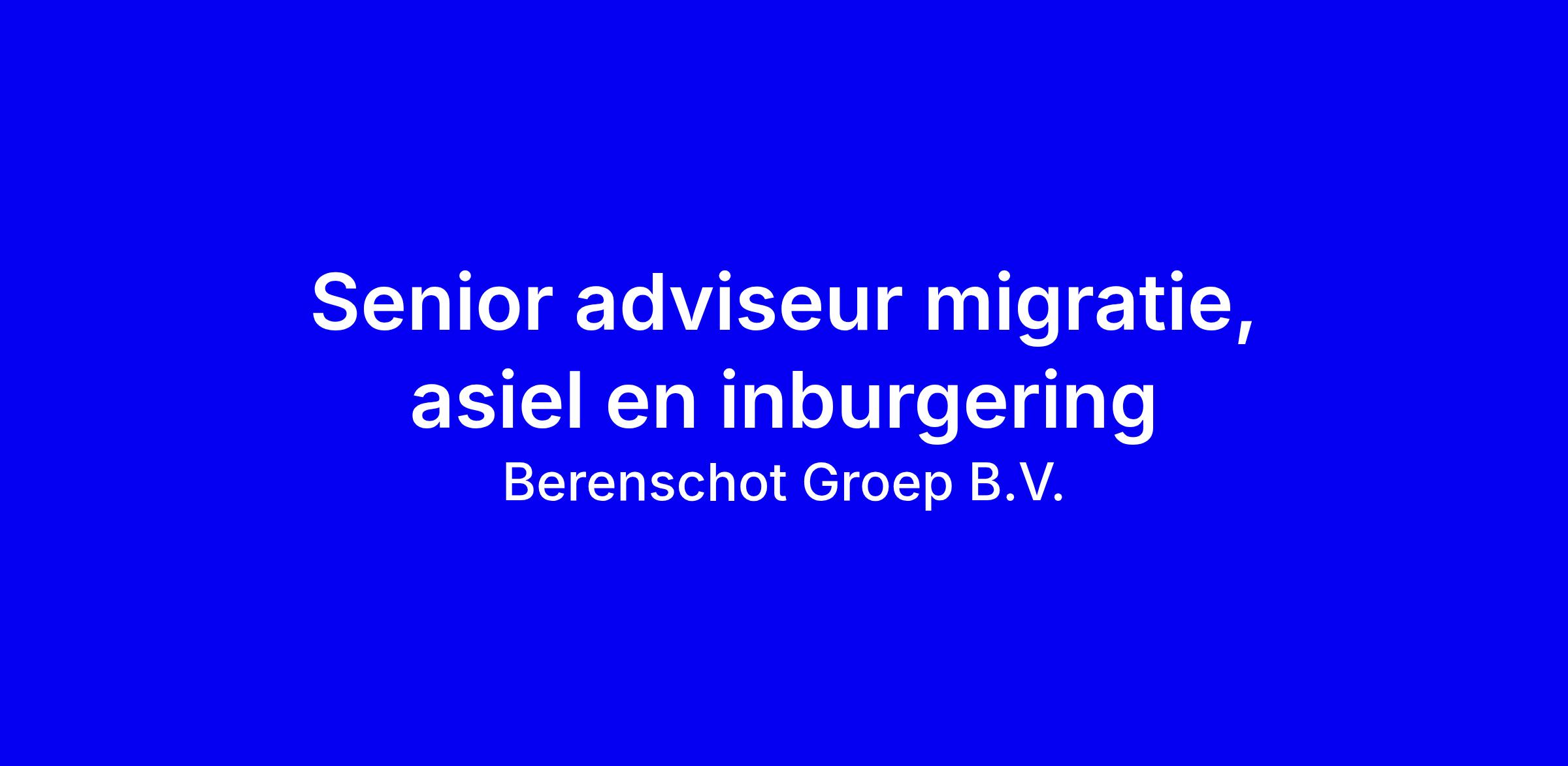 Wil jij bijdragen aan een samenleving waarin nieuwkomers snel en duurzaam hun plek vinden? Berenschot zoekt een energieke senior adviseur voor ons sectorteam sociaal domein, gespecialiseerd in migratie, asiel en inburgering. Ben jij een verbindende expert die beleid en uitvoering wil verbeteren rond deze thema’s? Dan gaan we graag met je in gesprek.