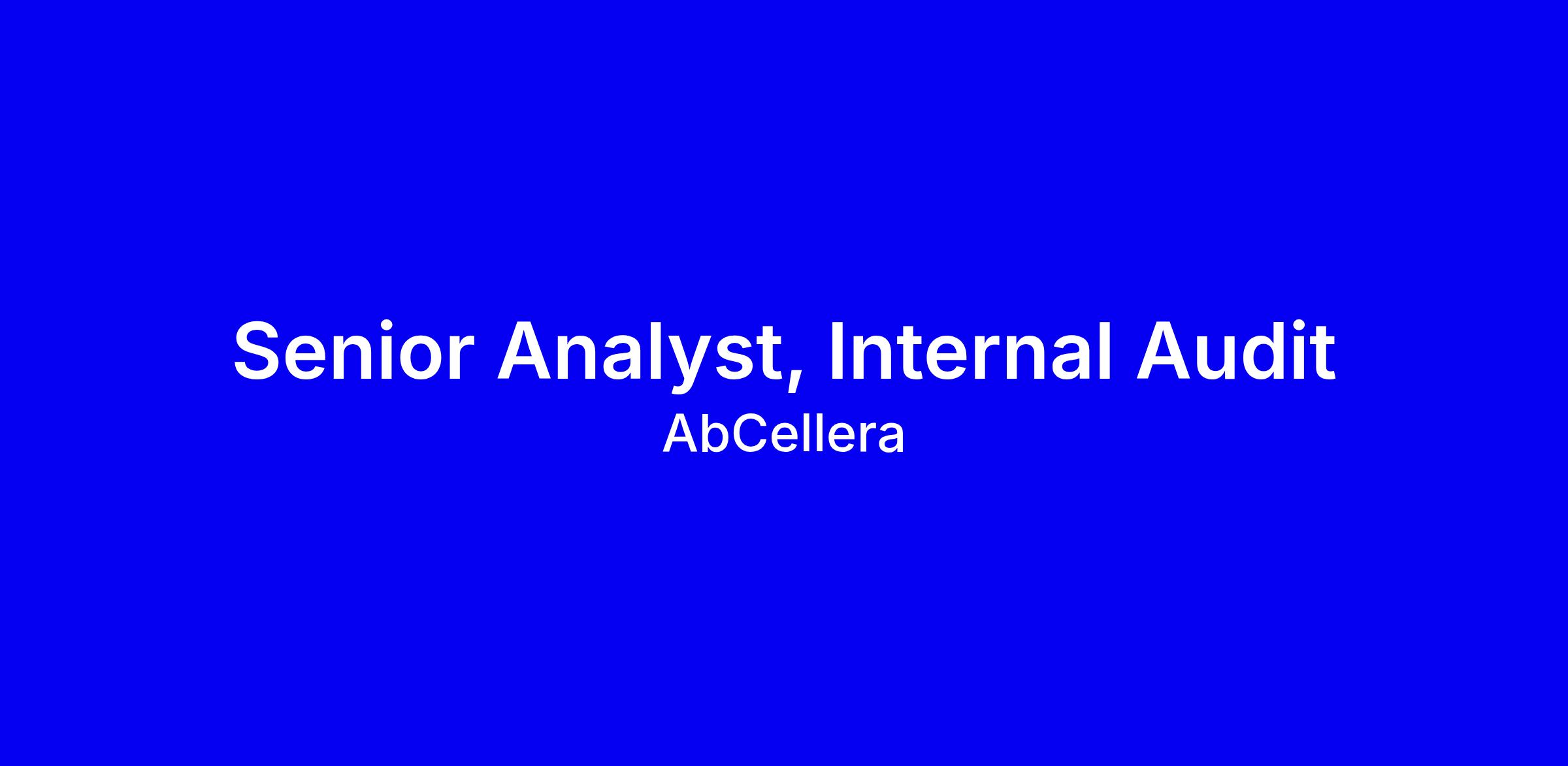 AbCellera is seeking a Senior Analyst in Internal Audit to join the Risk, Assurance and Advisory Services team in Vancouver, onsite, full time. The role focuses on assurance and advisory engagements, leading SOX controls work, planning and executing audits, evaluating processes and controls, and communicating findings to leadership to drive value and mitigate risk in biotech. Ideal candidates hold a designation (CPA, CISA, CIA or equivalent) with 5+ years in internal or external audit, solid US GAAP knowledge, IT general controls experience, and strong communication. To apply, tailor your resume to audit impact, reference Job ID 23310 in your cover letter, apply via our website, and expect emails from abcellera.com.