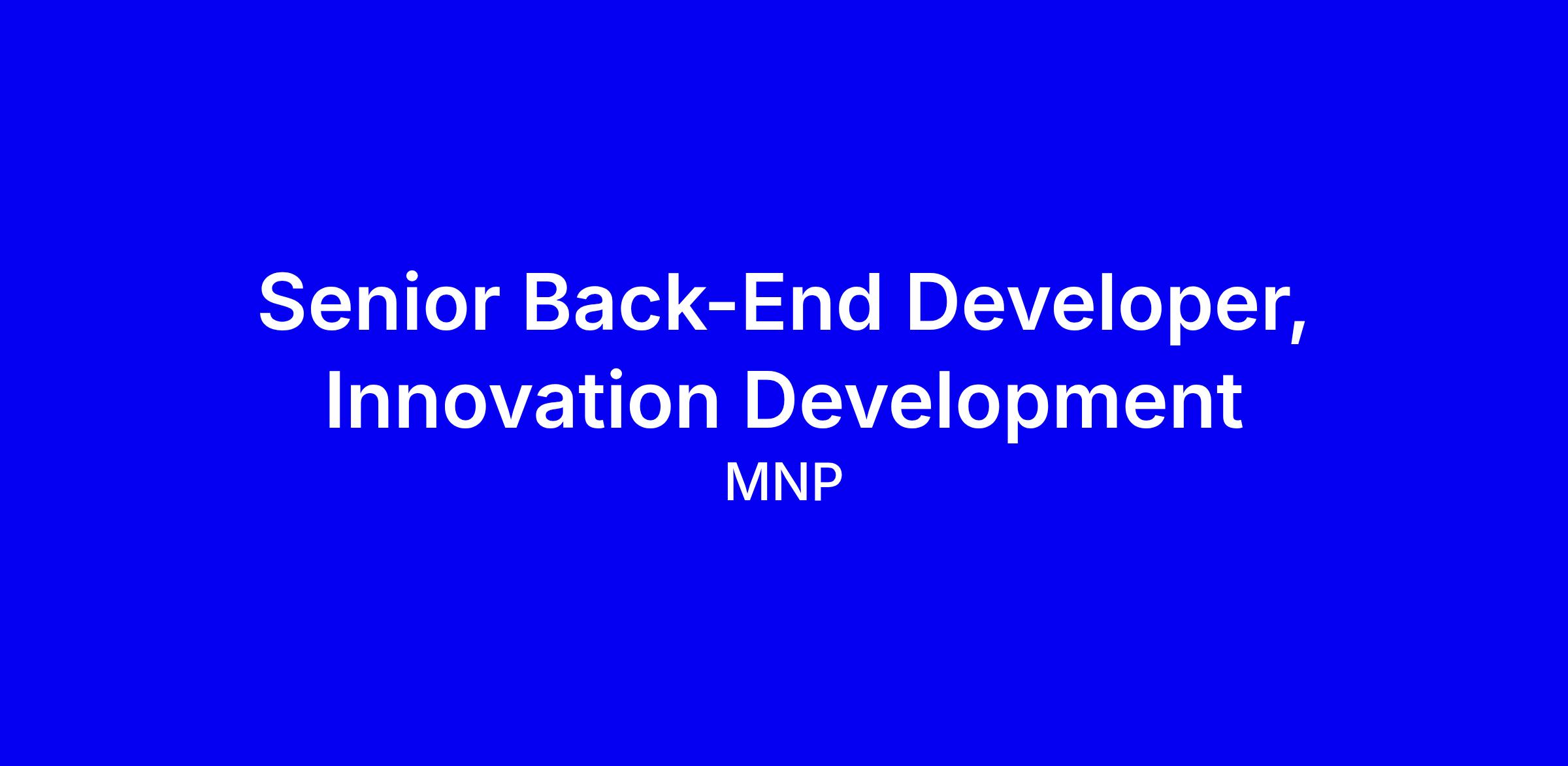Make an impact with our Technology - Development team as a Senior Back-End Developer, Innovation Development. This diverse team of tech-savvy builders and problem solvers embraces digital transformation, and the possibilities technology brings to the future of our industry. We’re looking for team members who have a strong sense of ownership and drive, and who thrive on delivering high-quality solutions that are redefining the way MNP does business.