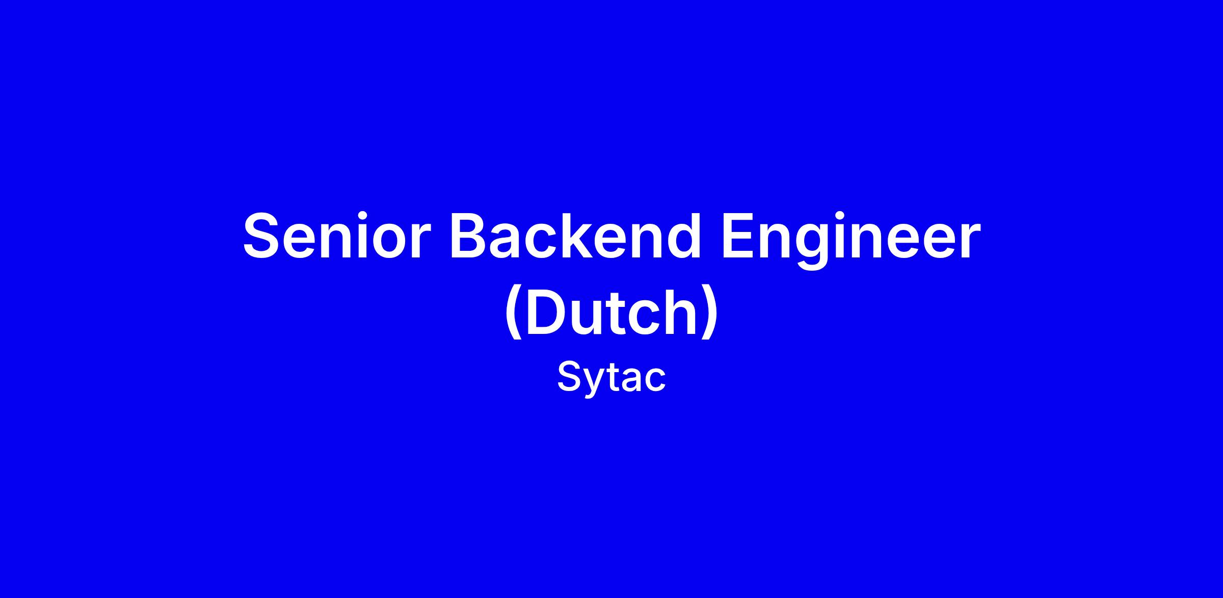 Sytac is een privaat ontwikkelhuis met een team van 100 senior engineers. Onze mensen maken dagelijks het verschil bij bedrijven als KLM, BOL, Albert Heijn, IKEA, ING en vele anderen. Als Senior Backend Consultant word je onderdeel van deze krachtige community van tech consultants die impact maken op schaal.