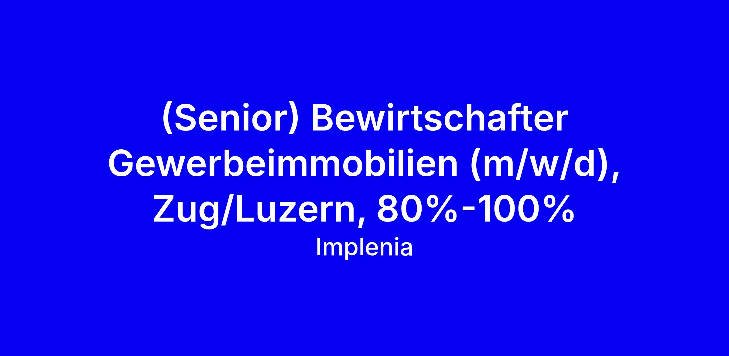 Bei Wincasa Implenia suchen wir einen (Senior) Bewirtschafter Gewerbeimmobilien (m/w/d) für Zug/Luzern, 60 bis 100 Prozent. Du übernimmst die ganzheitliche Bewirtschaftung eines Portfolios von Büro- und Gewerbeimmobilien, einschließlich Vermietung, Vertrags- und Abnahmeprozessen, Kostenkontrolle und Schlussabrechnung, und führst Verhandlungen sowie das Erstellen von Mietverträgen. Du koordinierst Abnahmen, Übergaben und Berichte, kommunizierst mit Eigentümern, Mietern, Behörden und weiteren Stakeholdern und leitest das Team bei der Liegenschaftsstrategie. Anforderungen: kaufmännische Grundausbildung, eidg. Fachausweis Immobilienbewirtschaftung, ideal Dipl. Immobilientreuhänder, mehrjährige Erfahrung, digitale Kompetenz, Team- und Kundenorientierung, Deutsch verhandlungssicher, Englisch von Vorteil. Benefits: flexibles Arbeiten bis 40 Prozent Home Office, Weiterbildungen, faire Entlohnung, attraktive Pensionskassenleistungen, Spitalversicherung. Tipp: Betone Erfolge in Vermietung, Verhandlungen und Budgetkontrolle, passe CV an die Ausschreibung an und nutze die Karriereseite, um Motivation und Führungsstärke zu zeigen.