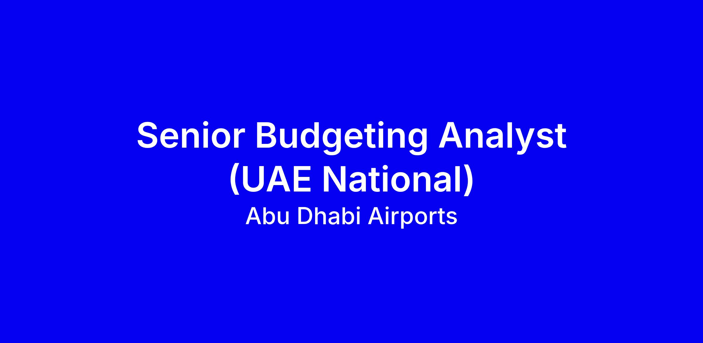 Abu Dhabi Airports seeks a UAE National Senior Budgeting Analyst to own end-to-end planning and financial analysis in line with ADAC’s cash flow and plans, supporting budgeting forecasting governance and KPI linkage within the strategic performance framework. The role includes preparing budgets and forecasts, performing variance analysis, managing budgeting change, gathering proposals from divisions, and delivering insights for external discussions and the Investment Committee, while maintaining the Budgeting and Planning system. Requirements: bachelor’s degree in Finance or Accounting, minimum four years in budgeting and planning, strong analytical and communication skills, high attention to detail and deadline discipline; UAE National status is essential. Apply with a CV that emphasizes end-to-end budgeting, KPI linkage, cross-functional collaboration, measurable results, and capex Opex and manpower planning.