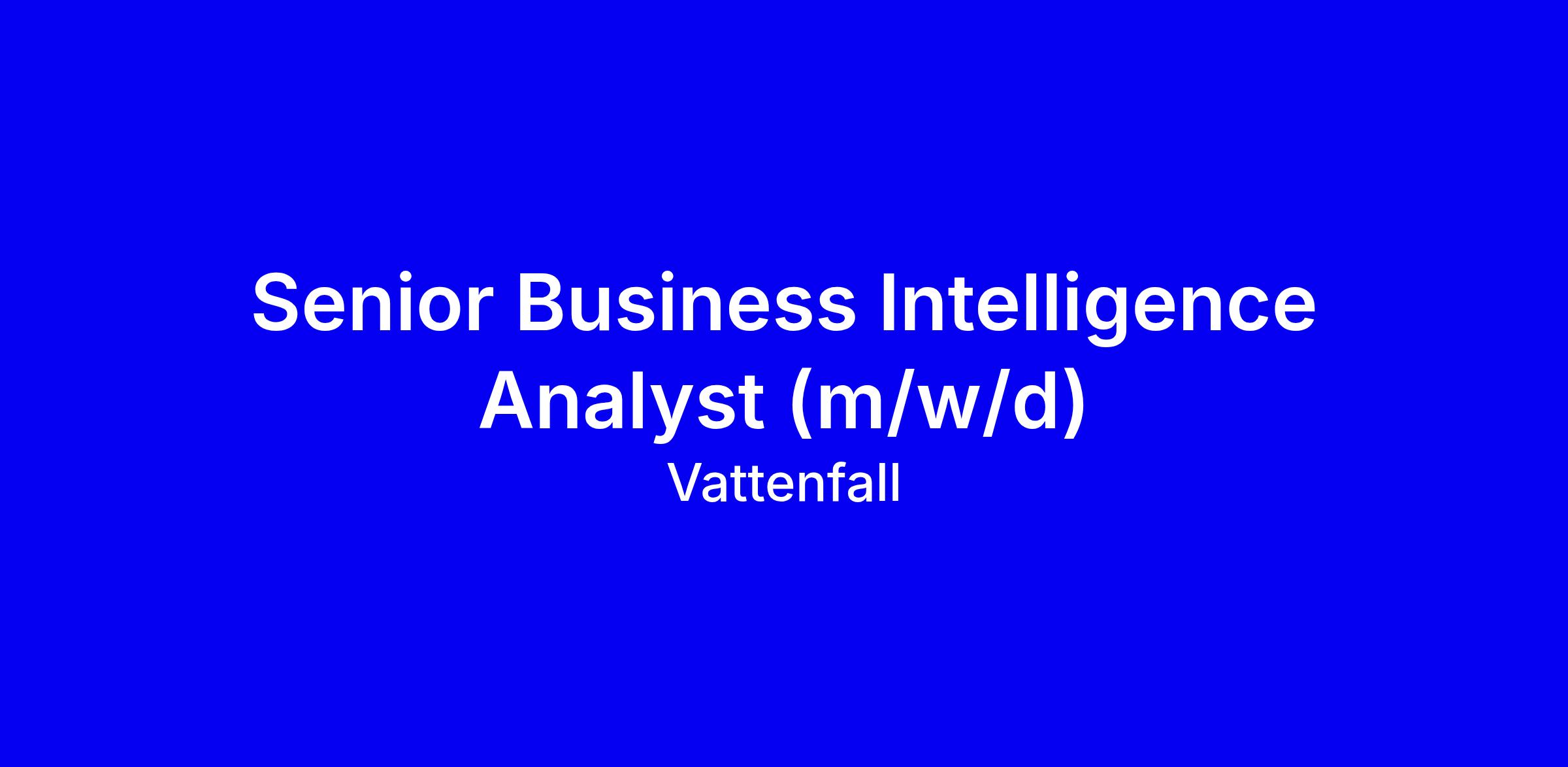 Wir bei der Vattenfall Europe Sales GmbH suchen dich als Senior Business Intelligence Analyst (m/w/d) für den Standort Berlin oder Hamburg zur Verstärkung unseres BI-Teams Performance Insight.