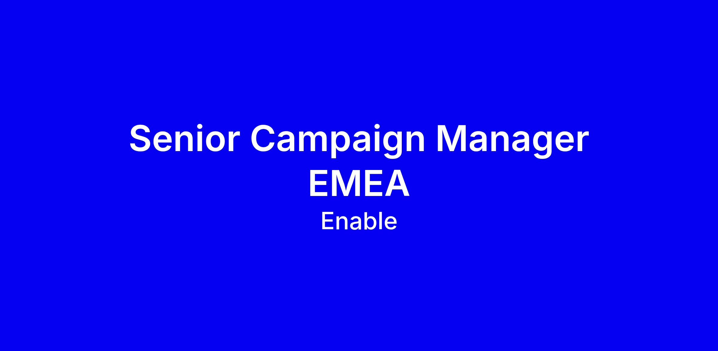 Enable is seeking a strategic yet hands-on Senior Campaign Manager for the EMEA region, based in London, responsible for the full lifecycle of demand generation from ideation through to performance, with a focus on contributing to a qualified pipeline through creative, data driven campaigns. The role requires 6+ years in demand generation, multi channel management, alignment between Sales and Marketing, proficiency with Salesforce and HubSpot or Marketo, and a willingness to travel 20 percent. Preferred: intent platform experience and AI enabled content and optimization. To apply, tailor your resume to show end to end campaigns, quantify pipeline impact, highlight cross functional leadership and AI driven outcomes, and include a brief example of a break away concept.