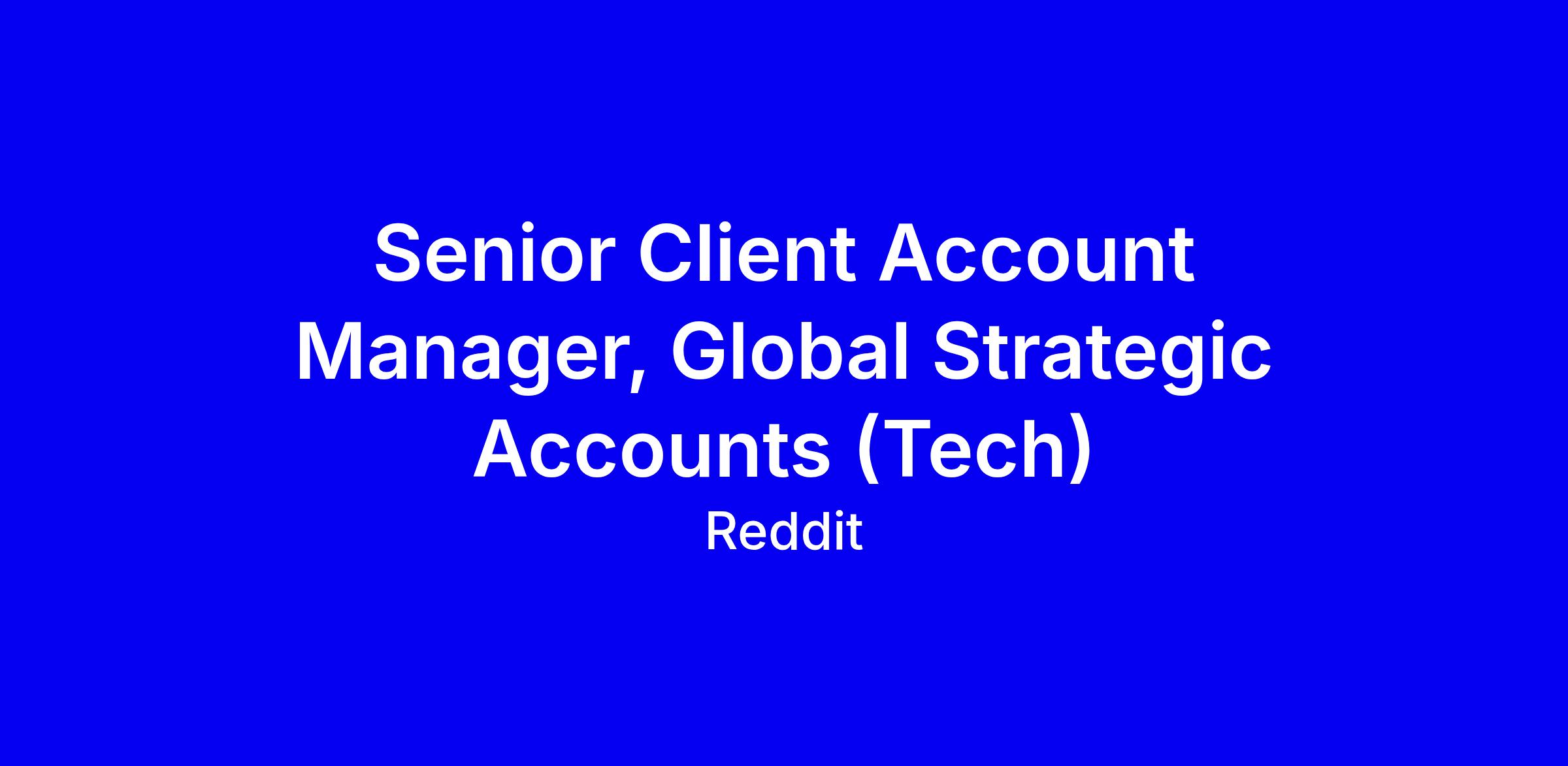 Reddit is seeking a Senior Account Manager for Global Strategic Accounts in Europe, based in London and on site. You will own a focused portfolio of global brands and agency partners, partnering with Client Partners to translate business goals into Reddit-led campaigns, oversee end-to-end execution, optimization, and post campaign analyses, and coordinate cross-region activations at scale. Success comes from deep client relationships, performance marketing expertise, and the ability to turn data into actionable strategies that lift KPIs. To apply, highlight 5-7 years in advertising sales and account management, proven direct response and measurement experience, cross-functional collaboration, strong communication, and Excel proficiency; show examples of global campaigns, complex problem solving, and a bias for action in fast-paced environments.