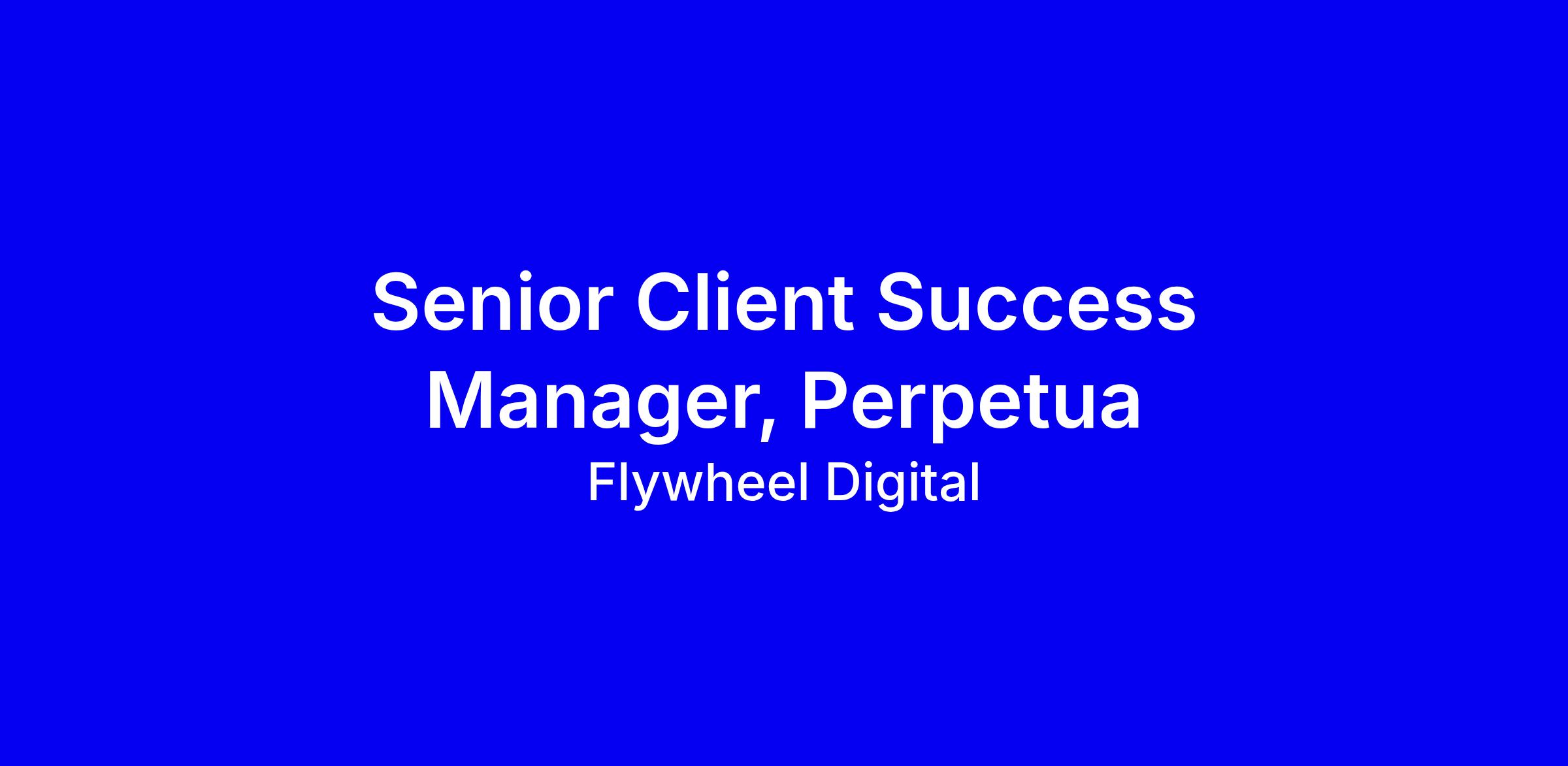 Perpetua, from Flywheel is looking for an accomplished Senior Client Success Manager to spearhead strategic partnerships with our clients, drive measurable value and champion world-class client experiences. If you thrive at the intersection of data, technology and client success and want to make a significant impact at a high-growth SaaS company, this role is for you.