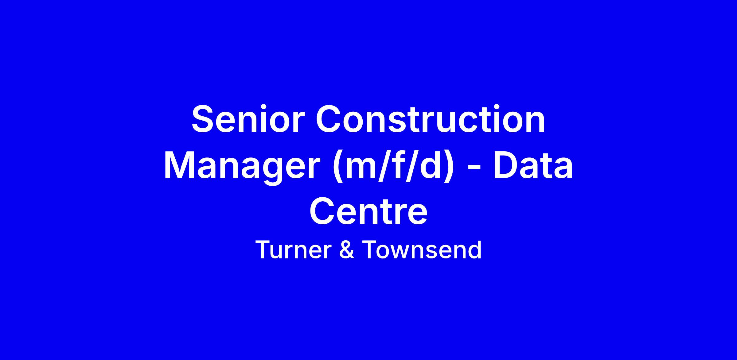 Turner & Townsend are leaders in professional services to the Data Centre sector globally. Due to the continued success and expansion of our Data Centre business in Germany, we are currently recruiting for an experienced, site based Senior Construction Manager to join our Data Centre team in Frankfurt.
