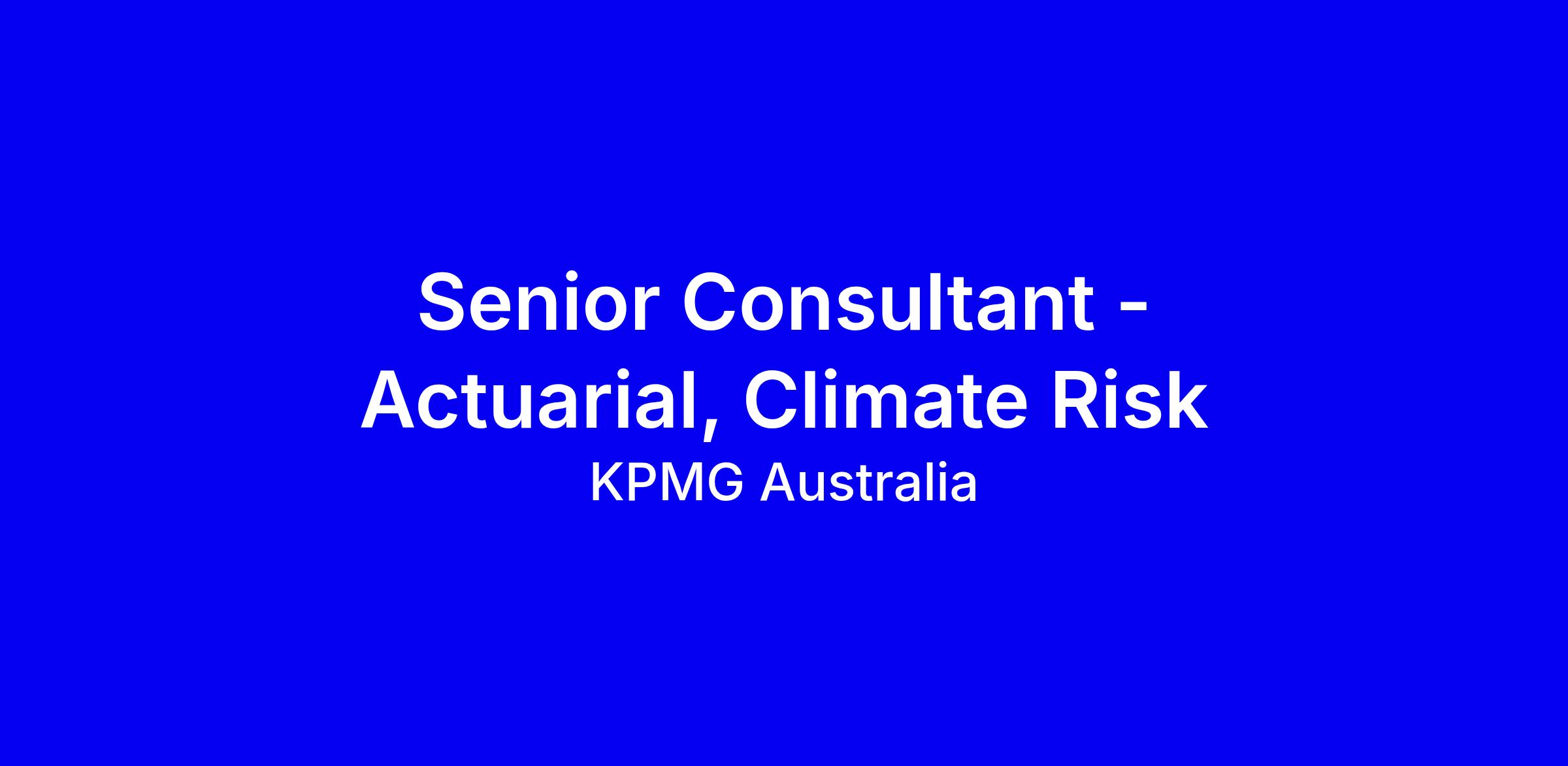 KPMG Australia is seeking a Senior Consultant in Actuarial, Climate Risk to join the Advanced Analytics team in Sydney, helping clients quantify physical and transition climate risks and opportunities using actuarial and data science approaches. You will work in multidisciplinary teams, manage whole projects, help develop new client offerings, and build geospatial probabilistic models that translate complex risk insights into actionable business decisions. The ideal candidate has actuarial or analytics experience, strong Excel, Python, R and SQL, and a commercial knack for spotting business needs and pitching pragmatic solutions. You should be a confident communicator with client facing experience and a passion for climate and energy transition. To apply, tailor your CV and cover letter to demonstrate prior impact on clients, collaboration across teams, and your capacity to manage multiple priorities while continuing to learn and grow.