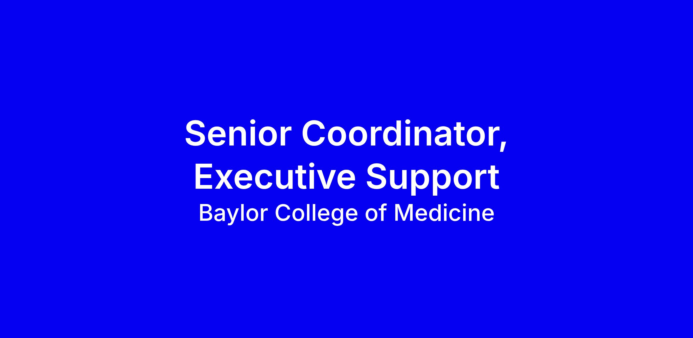 The Senior Coordinator, Executive Support provides high‑level administrative and operational support to the Department Chair and Chief of Service at CHI Baylor St. Luke’s Medical Center. This role manages complex daily operations with minimal supervision, including comprehensive calendar oversight, travel coordination, and the execution of confidential tasks requiring discretion and sound judgment. Serving as a key liaison, the coordinator facilitates communication between college and hospital leadership, departmental faculty, and administrative offices across the institution. The role works closely with the BCM Office of Faculty Affairs to support all aspects of faculty appointments and promotions. This position also oversees the full lifecycle of faculty recruitment, including applicant communication, itinerary development, and coordination with leadership teams at CHI BSLMC, Ben Taub/Harris Health, the Michael E. DeBakey VA Medical Center, and Texas Children’s Hospital. Success in this role requires exceptional verbal and written communication skills, a high degree of professionalism, and the ability to manage sensitive information with strict confidentiality.