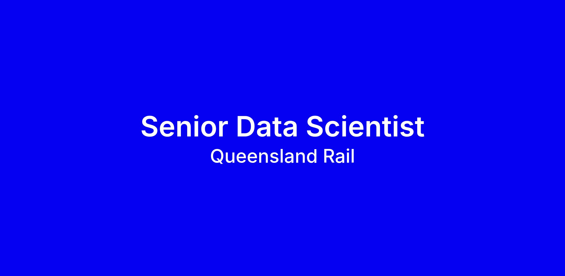 Queensland Rail is built on true connection and everything we achieve is made possible by you. For over 150 years, our teams have played an important role in connecting people and communities across the state. As a Senior Data Scientist you’ll contribute to our proud legacy and help us build an even brighter, more sustainable future - and that means incredible things for your career.