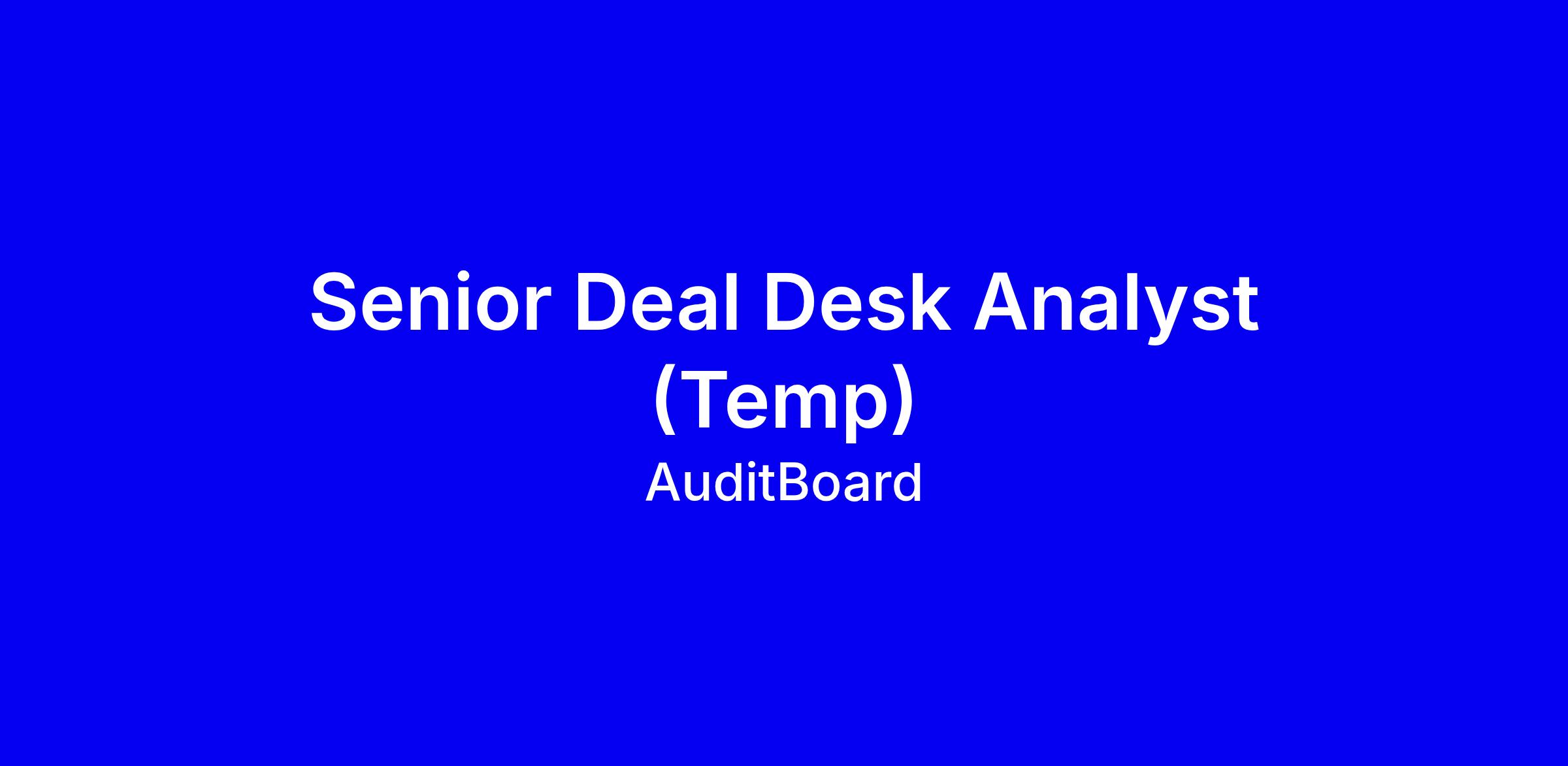 AuditBoard is seeking a Senior Deal Desk Analyst (Temp) to join our Global Deal Desk team. The Deal Desk Analyst Contractor role is viewed as a trusted and recognized business partner to the Sales Field Organization. The Deal Desk Analyst will support all commercial-related activities including, but not limited to, deal structuring and pricing, contract creation, review and approval for quotes, and providing support to the Sales Field on AuditBoard’s quoting tools.