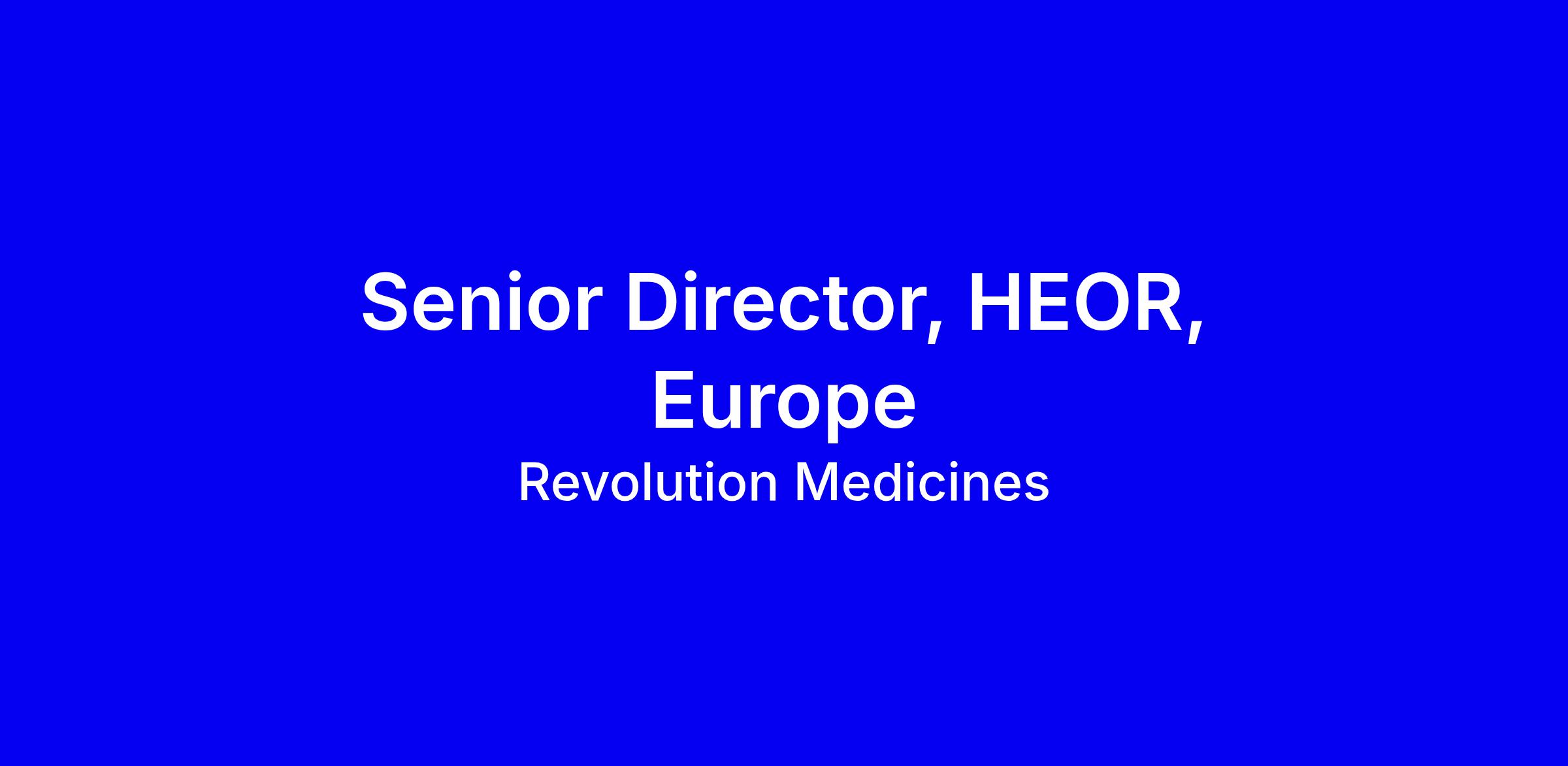 The Senior Director, HEOR, Europe will participate in developing the strategy and then driving execution of the tactical plan across health economics, outcomes research, and real-world evidence (RWE) to optimize the value demonstration of the Revolution Medicines oncology portfolio across European markets. They will work in concert with the Global HEOR and other regional teams to deliver an impactful evidence for select assets and disease areas. The Senior Director, HEOR, Europe will work across the European Matrix including Medical Affairs, Market Access, Commercial and Country level teams. The Senior Director, HEOR, Europe will report to the Executive Director, HEOR, Europe and will be part of the broader extended Global HEOR/RWE and IEP team. They will participate with cross-Europe initiatives and be responsible for leading target projects and may be accountable for Global alignment on select programs.