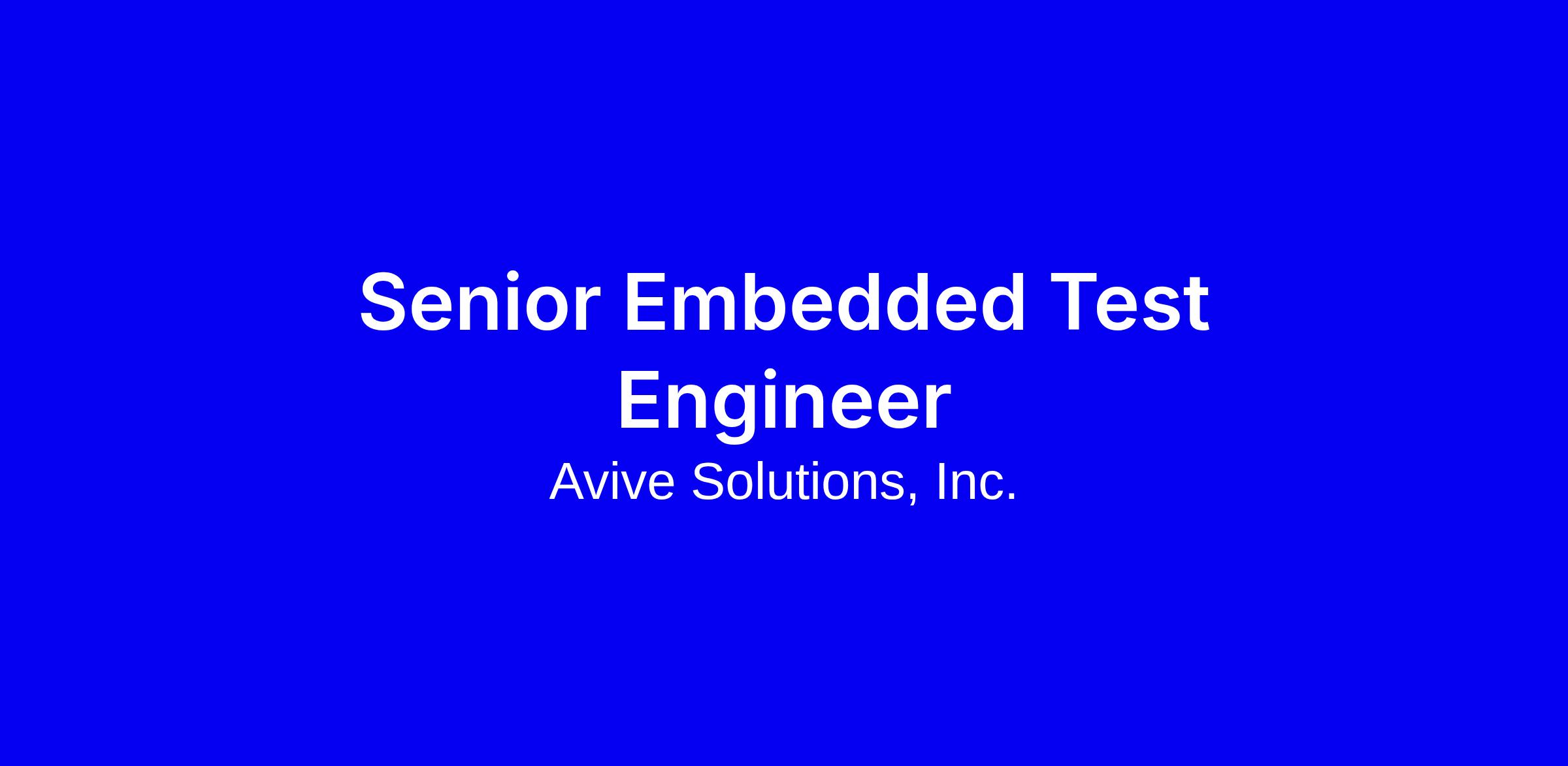 About Avive:Avive Solutions, Inc. (https://avive.life) is a growth stage Automated External Defibrillator (AED) company with a connected response system that is rapidly gaining market share. We are a mission driven team that is quite literally saving lives. Sudden Cardiac Arrest (SCA) is a leading cause of death in the United States, and we are on a mission to change that! We are a dynamic organization that builds elegant, creative solutions to solve complex problems. Ultimately, our mission is for all cardiac arrest victims to have rapid access to life-saving defibrillation.Avive is taking a fresh approach to addressing this decades-old problem by innovating AED technology, coupled with a first-of-its-kind software platform solution to enable a quicker and more streamlined response to SCA emergencies. We believe that this unique combination of deploying advanced – yet still accessible – hardware, and software, has the potential to revolutionize out-of-hospital cardiac arrest response and massively impact SCA survival rates.Check out this short video that shows a glimpse of how our team is working to re-think cardiac arrest response and save lives!https://www.youtube.com/watch?v=2p4zfOWo62ELearn more about working at Avive:https://avive.life/careers/About the Role: This position plays a critical role in the testing of Avive’s embedded software from early design stages through commercialization, ensuring that all products comply with internal, regulatory, and customer requirements. Additionally, this position plays an active role in providing best-in-class quality engineering practices by focusing on automating and executing tasks in an efficient and effective manner.