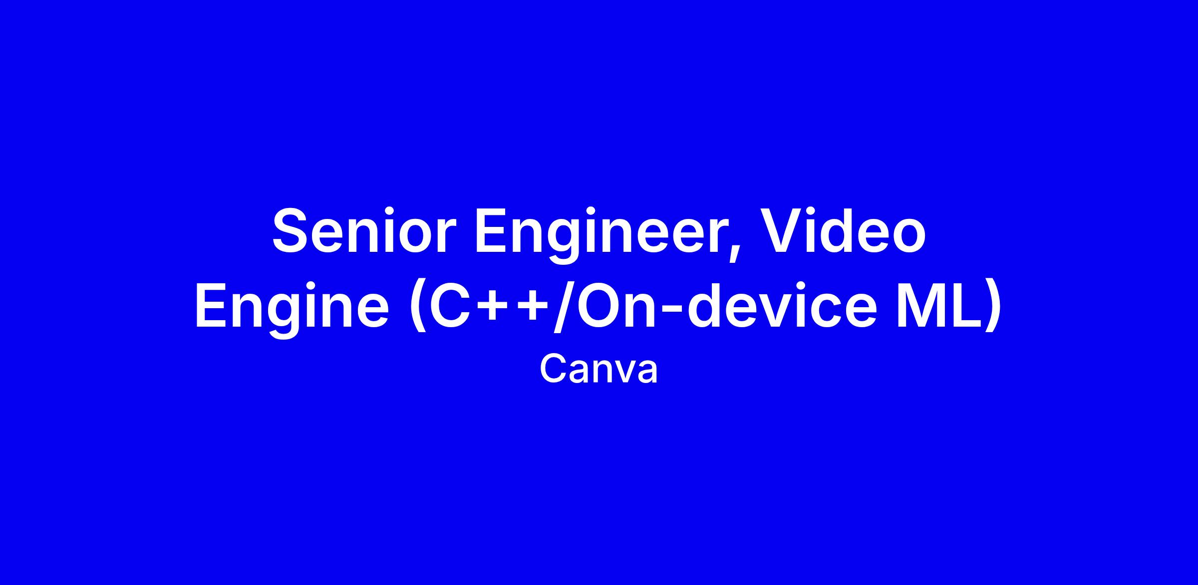 Canva is hiring a Senior Engineer, Video Engine (C++/On-device ML) to build and evolve Canva’s native video engine for high‑performance rendering, low latency, and cross‑platform workflows. You’ll ship production C++ or Rust code, partner with product, platform and media teams, mentor others, and explore new media processing and ML approaches. The role is based in Australia with flexible work options, equity, parental leave, a wellbeing allowance, and flexible leave. What matters most: solid production experience in C++ or Rust, deep knowledge of graphics or media pipelines (OpenGL, Vulkan, FFmpeg), and strong systems design; on‑device ML is a plus. Apply with evidence of delivery at scale, project links, your pronouns, and any adjustments; interviews are virtual.