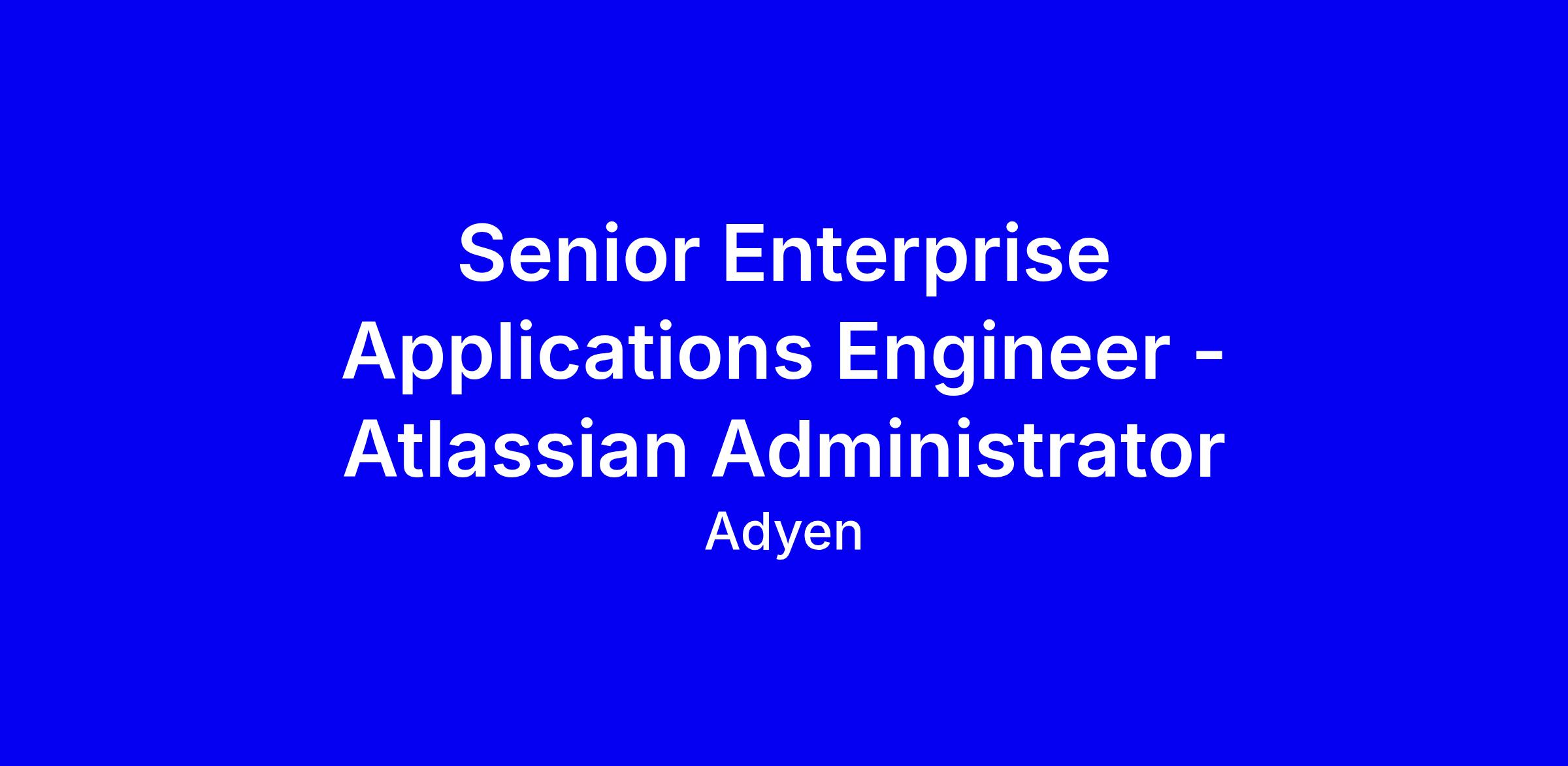 Adyen is seeking a Senior Enterprise Applications Engineer to design, scale, and optimize our enterprise and SaaS toolset with a focus on the Atlassian suite (Jira and Confluence). You’ll unify tooling across Google Workspace, Slack, Zoom and Monday, build automation with Python, and partner with Enterprise Access Management for secure provisioning. The ideal candidate has deep Atlassian administration experience, a security first mindset, and a track record migrating users and projects from legacy tools. To apply, tailor your resume to highlight Jira/Confluence work, automation scripts, and concrete outcomes; share examples and documentation. This is onsite in Amsterdam; the process usually takes about four weeks. We value diverse voices and encourage applicants who meet most qualifications.