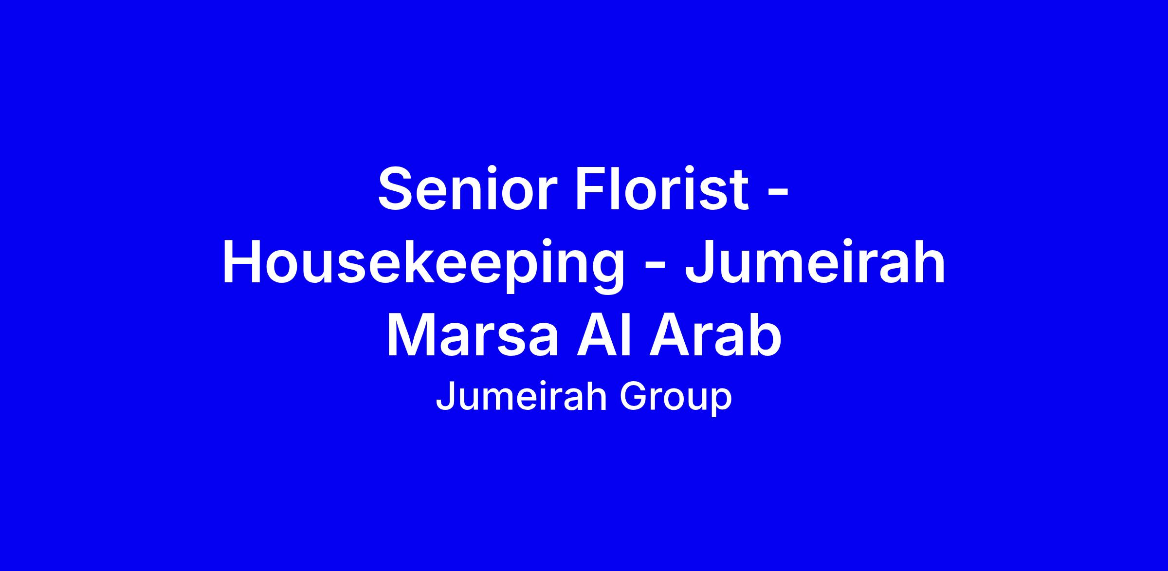 Jumeirah Marsa Al Arab is seeking a Senior Florist to join its Housekeeping team on a full-time, onsite basis in Dubai, with the role focusing on fulfilling all flower orders for resort outlets, preparing daily expense reports, training and mentoring fellow florists on current techniques, and delivering consistent, high-quality service while following SOPs and health and safety standards; you will also manage stock of ribbons, wires and wrapping materials. The ideal candidate has luxury hospitality experience, a relevant degree, strong Microsoft Office skills, and additional language ability. To apply, tailor your resume to show leadership in floristry, budget control, and guest-facing decor, include a portfolio if possible, and highlight measurable results.