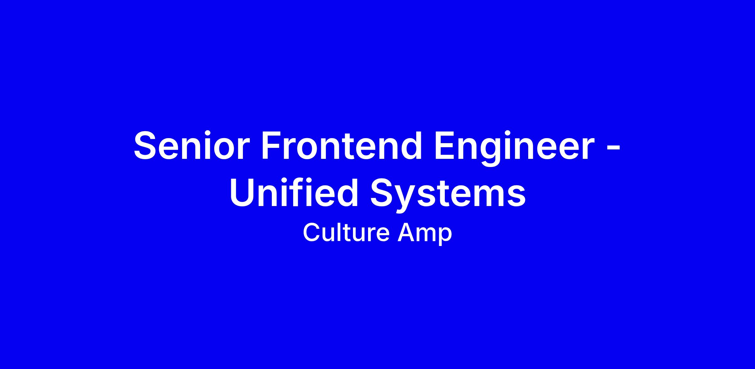 Culture Amp is seeking a Senior Frontend Engineer to join the Unified Systems team onsite in Sydney, full-time. You’ll mainly use React and Next.js with TypeScript to build and maintain UI components in the Kaizen design system and own shared libraries powering the platform. Expect collaboration with product and design peers, documentation, while raising engineering standards and ensuring security, observability and performance in production. To apply, show frontend fundamentals, a track record of scalable web apps, and design system experience, plus a growth mindset and collaborative approach. We encourage you to apply and share how you can amplify our team, and note diversity questions or accommodations if needed.