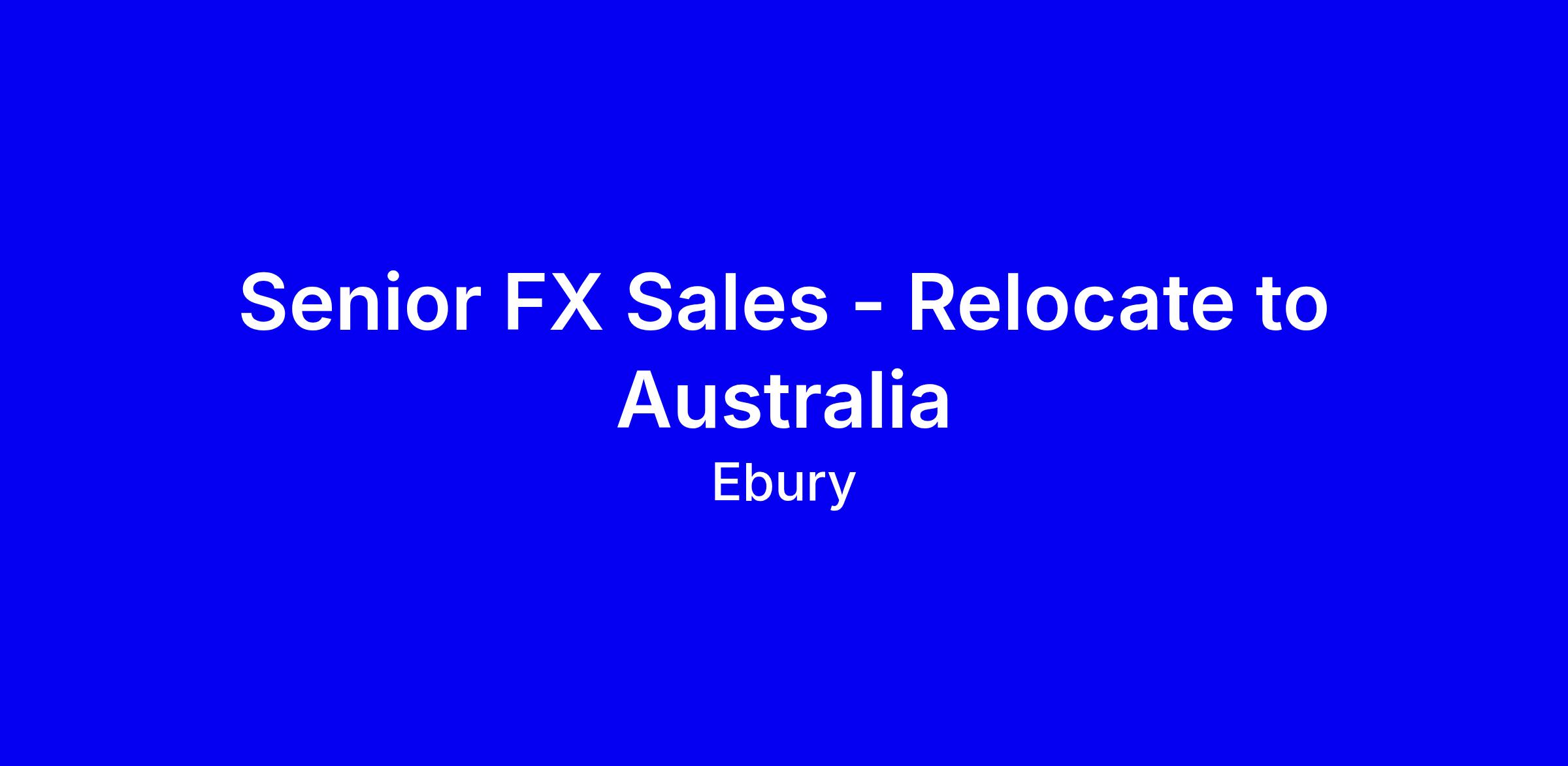 Senior FX Sales - Relocate to Australia