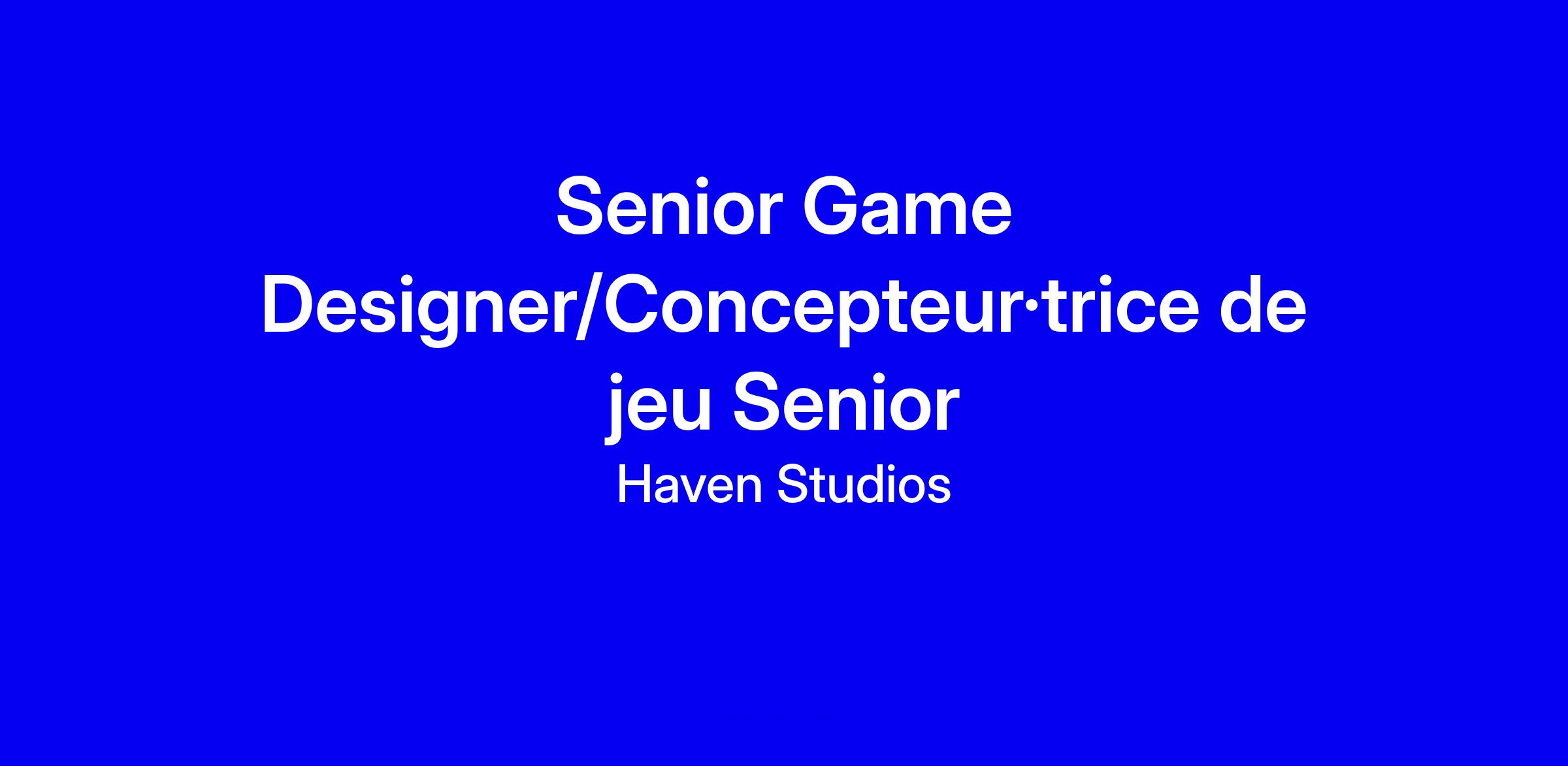 Haven Studios is seeking a Senior Game Designer (Concepteur·trice de Jeu Senior) for Montréal, full-time onsite, reporting to the Producer. You will develop and iterate game features that fit our creative vision, balance the game for fun, and partner with art, programming and World teams to deliver a cohesive experience. Write high level design documents, define systems, and drive rapid iteration to achieve balance and pacing. The ideal candidate has shipped titles, loves multiplayer and competitive gameplay, and can lead cross disciplinary efforts. Bonus: live ops, Unreal Engine, accessibility. How to apply: highlight a shipped title with measurable outcomes, include design docs or portfolio items, and show collaboration and iteration in action.