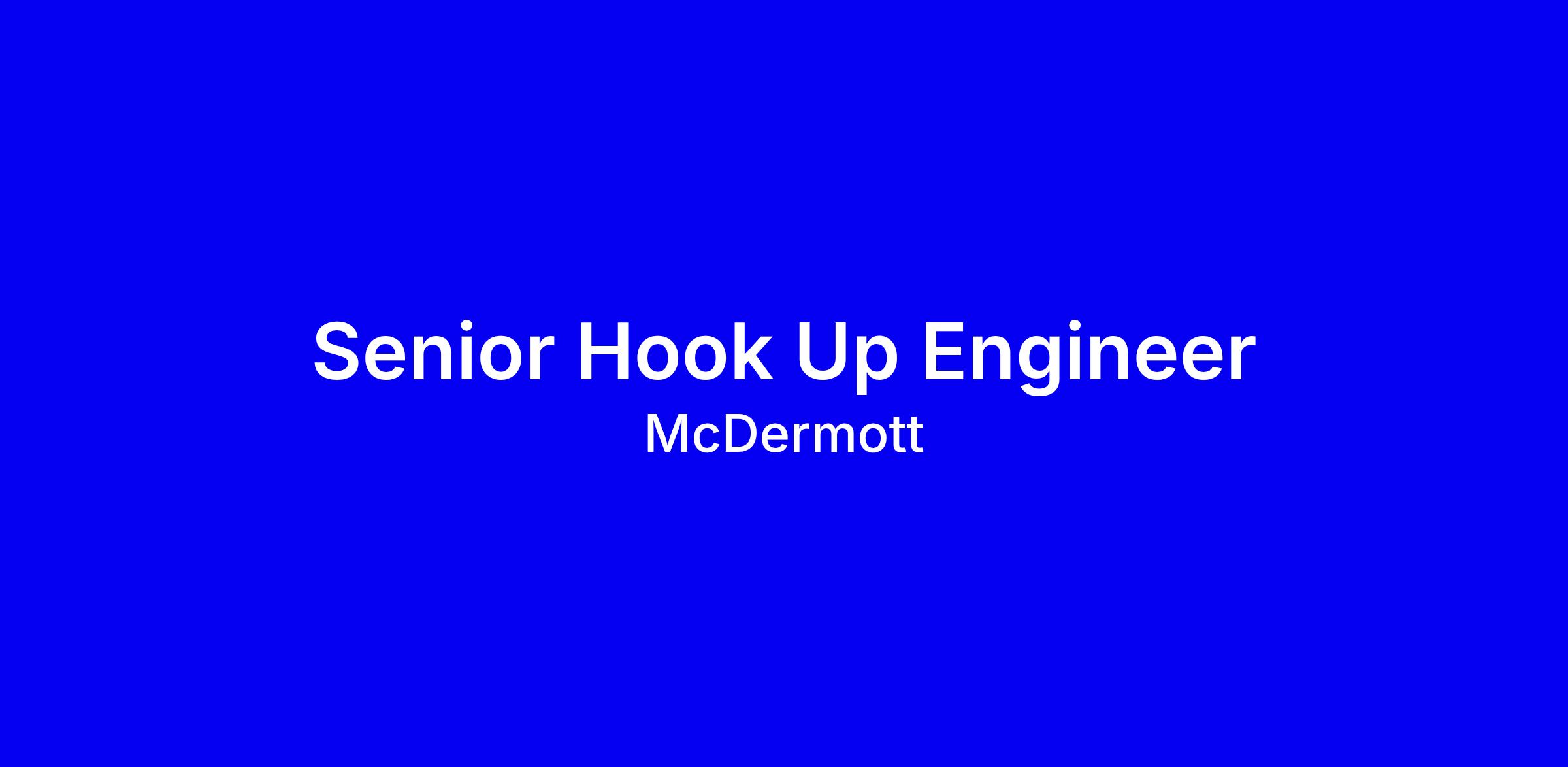 - Strong knowledge of industry best practices, standards (API, ISO), and regulations related to hook-up activities