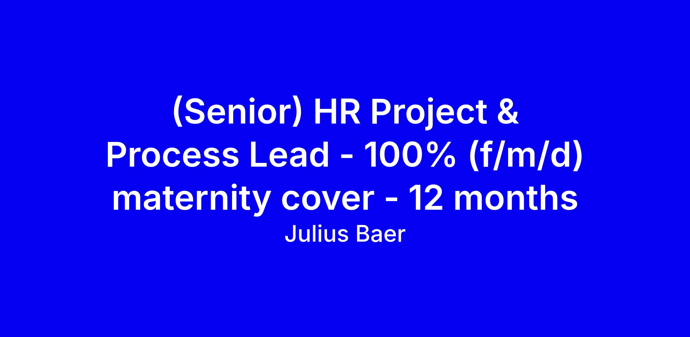 Julius Baer is hiring a Senior HR Project & Process Lead for a 12-month maternity cover, onsite in Zürich, to own the promotion process with emphasis on senior promotions for 2026/2027 and to advance internal mobility and the talent marketplace. You will collaborate with HR partners and managers across the organization to keep the talent journey on track and deliver initiatives in the People, Brand & Marketing unit. The ideal candidate has a Master’s in HR or related field, 4‑6 years in HR project roles in finance, strong Workday and Excel skills, fluency in English and German, and a proactive, empathetic mindset. Apply online with a tailored CV and examples of cross-functional projects.