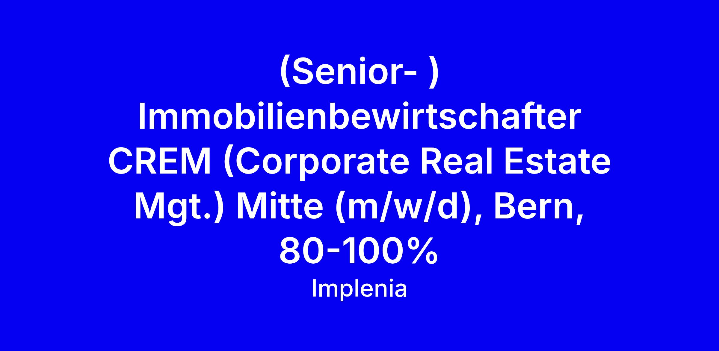 Für unser Team CREM Mitte, welches ein namhaftes Schweizer Grossunternehmen betreut, suchen wir in Bern eine engagierte, erfahrene und selbständige Persönlichkeit als