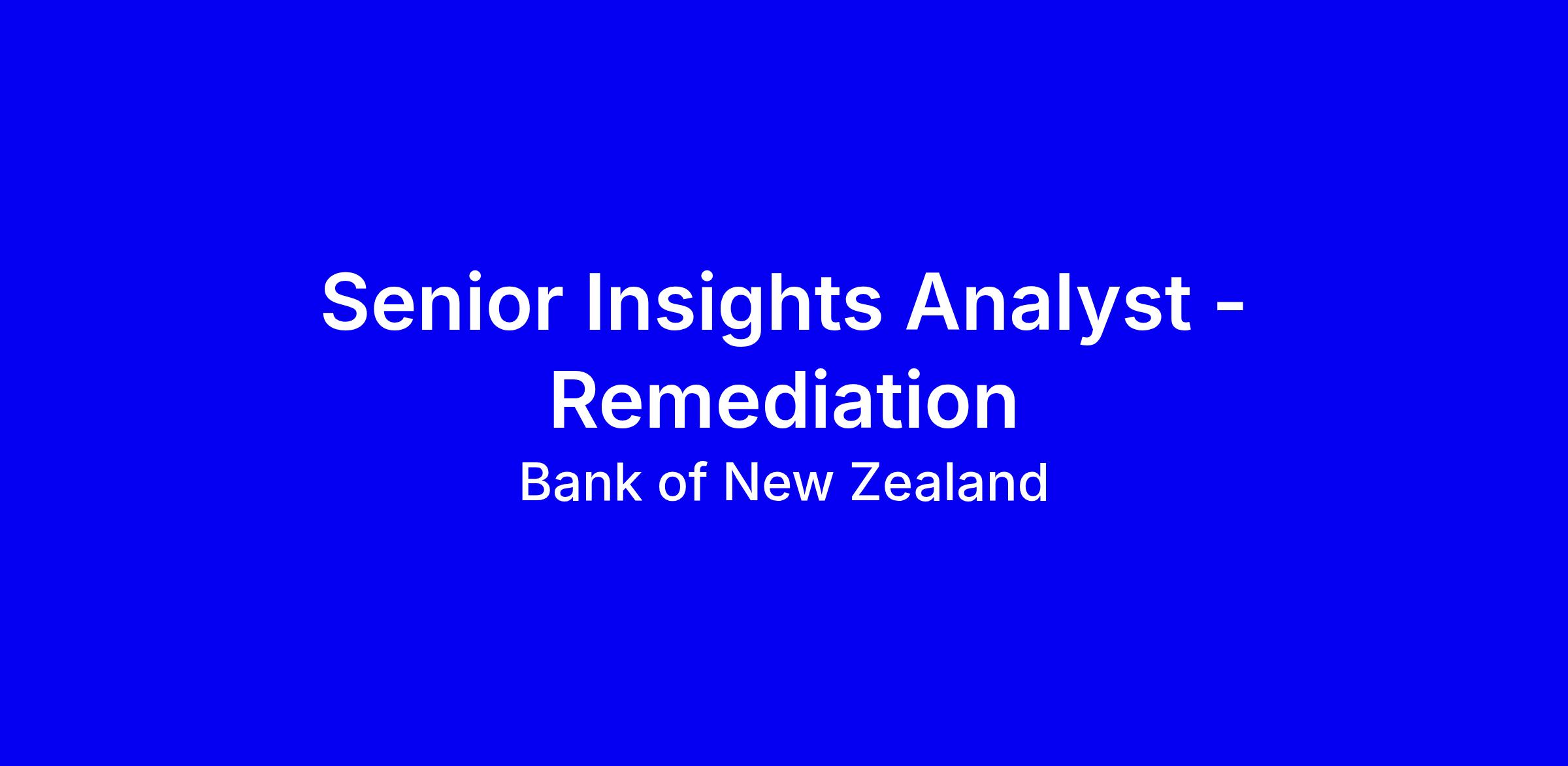 BNZ is hiring a Senior Insights Analyst for a 12 month fixed term to join the Remediation team in Auckland, onsite, delivering remediation cases with solid insights, data and technical solutions while coaching fellow analysts. You’ll investigate issues, define affected customer groups, quantify financial impact and ensure consistent, fair remediation outcomes, translating business problems into data solutions and contributing thought leadership to the Customer Remediation CoE. The role requires at least five years in data roles with SQL or Python and tools such as SAS, Snowflake, DBT or Hadoop, plus financial services experience focused on compliance. To apply, highlight your independent planning, stakeholder communication, ability to simplify technical details for non technical audiences, and readiness for a fast paced, autonomous team; closing date is 13 March 2026.