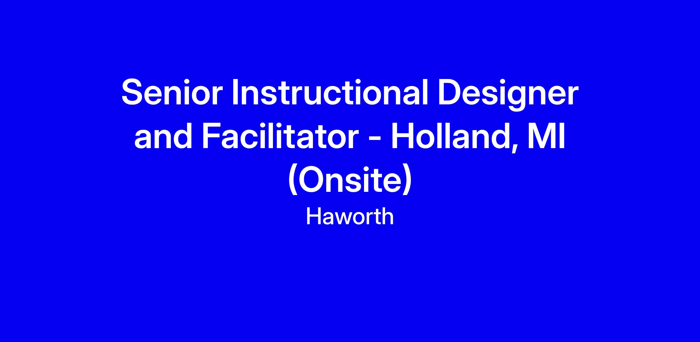 We are looking for a Senior Instructional Designer and Facilitator to join our team onsite in Holland, MI.