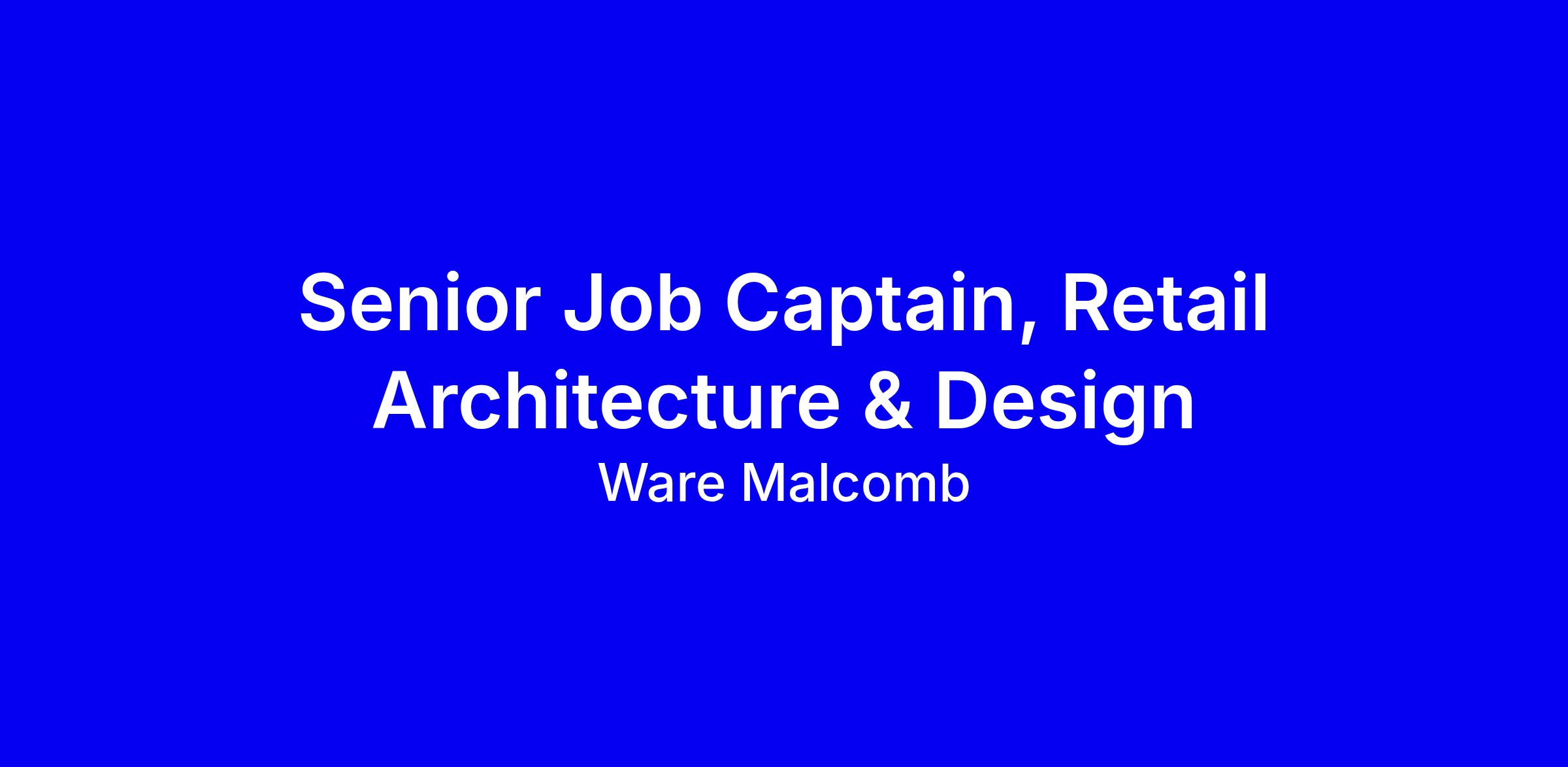 https://waremalcomb.com/life-at-ware-malcomb/ As a Senior Job Captain at Ware Malcomb, you will support in the delivery of innovative design projects to diverse clients. You will lead project coordination with consultants and internal teams, contribute to all phases of design and provide construction administration support. You will use your technical expertise and knowledge of building codes to produce high-quality construction documents and ensure smooth project execution. This is a great opportunity to collaborate with clients, consultants, contractors, and our dynamic team while advancing your architectural career.