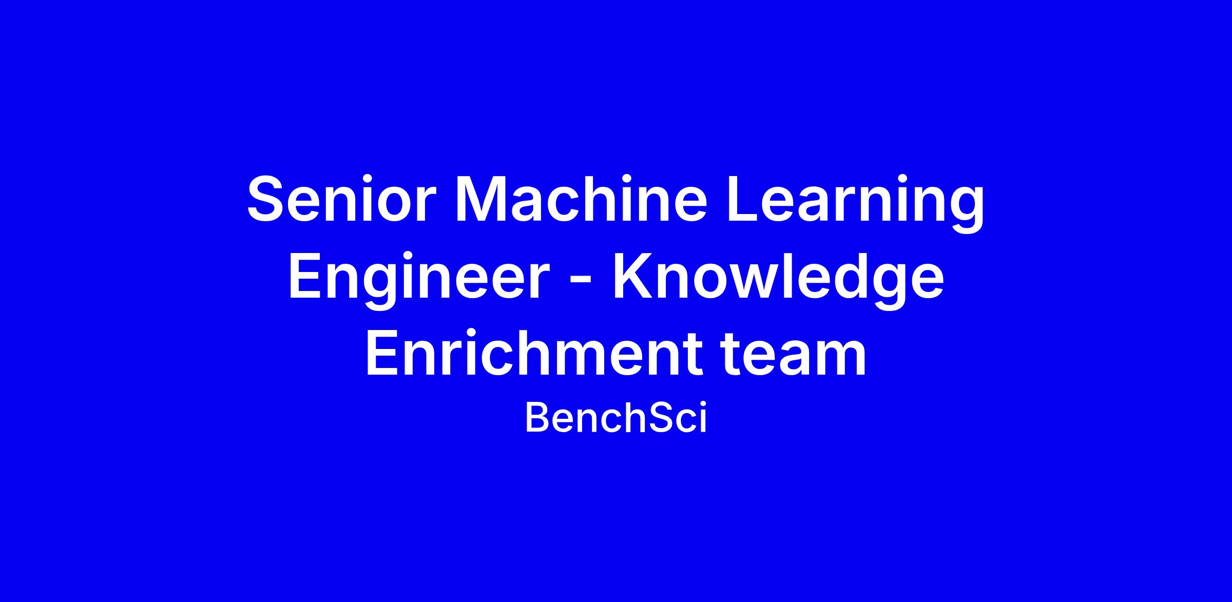 We are looking for a Senior Machine Learning Engineer to join our Knowledge Enrichment teamat BenchSci.