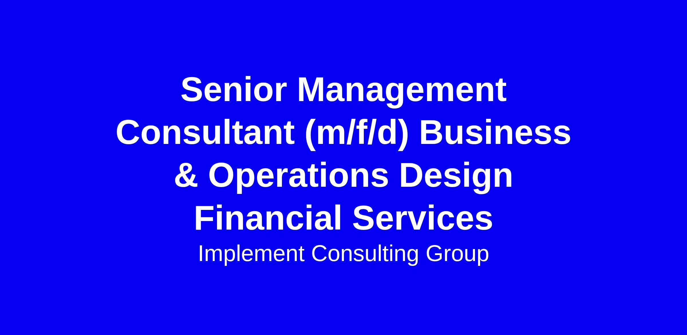 Implement Consulting Group is looking for experienced Senior Management Consultants to strengthen our growing Financial Services team in Switzerland.