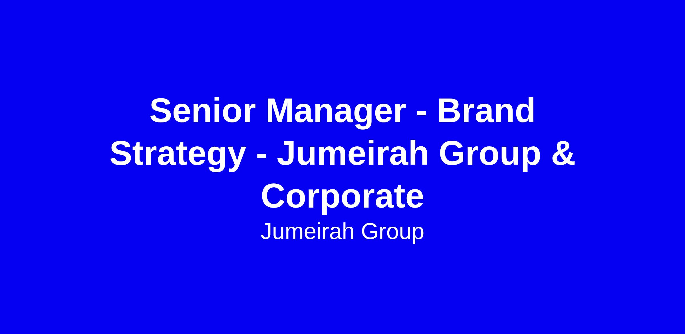 An exciting opportunity has arisen for a Senior Manager - Brand Strategy to join Jumeirah Group & Corporate. The main duties and responsibilities of this role include: