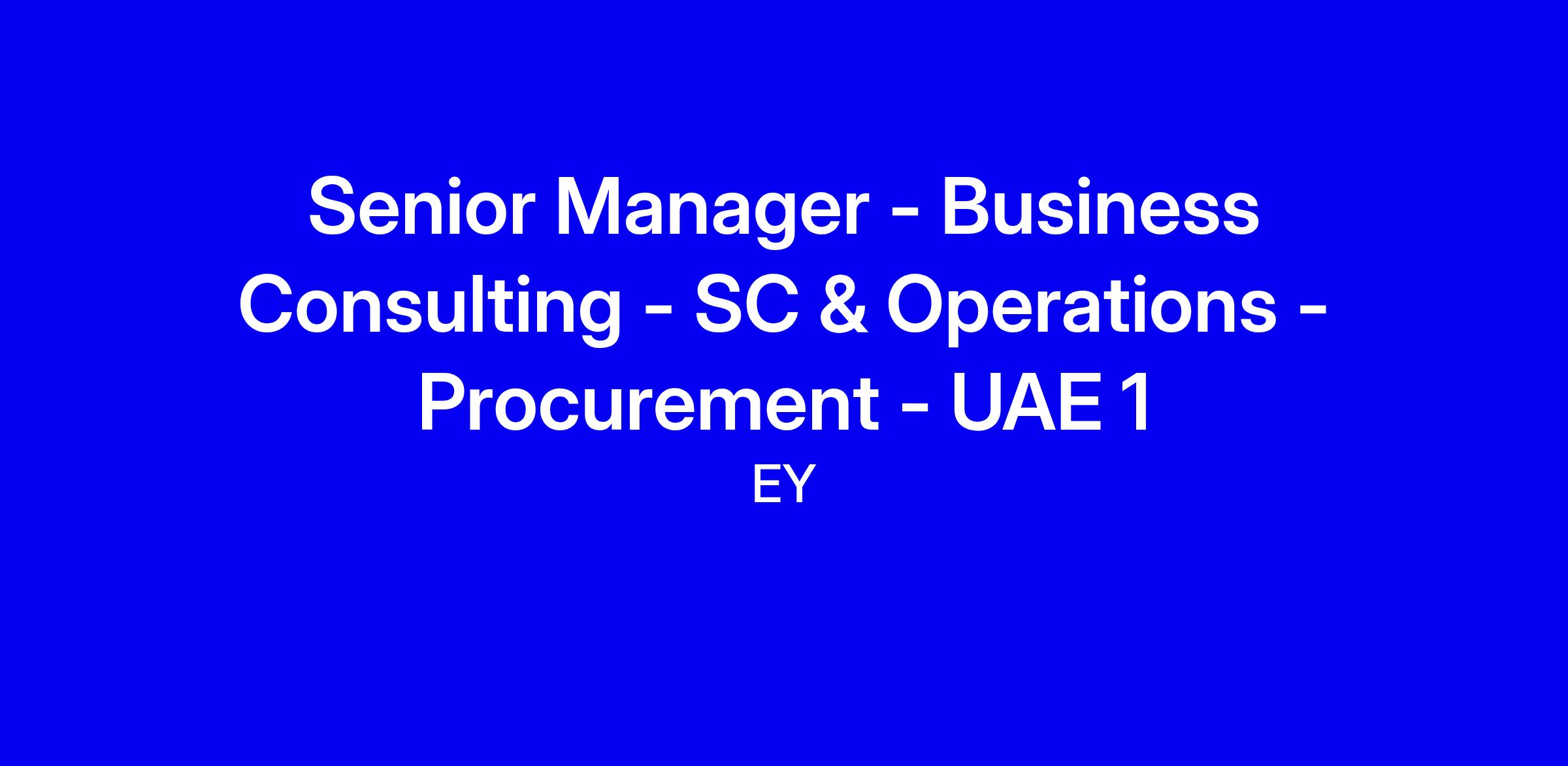 EY seeks a Senior Manager in Procurement to lead client engagement teams in the Supply Chain & Operations practice in Abu Dhabi. You will drive large procurement programs, cultivate C level relationships, lead bids, and mentor teams while delivering improvements in spend management, operating model transformation, digitalization, ESG, and procurement operations. Requirements include 10+ years at a tier 1 consultancy, a proven track record of procurement transformations, strong business development skills, and excellent communication. Arabic is a plus but not essential. Ideal candidates are analytical, change minded, collaborative, and travel ready. To apply, tailor your CV to showcase leadership in transformations and explain how you can help EY grow.