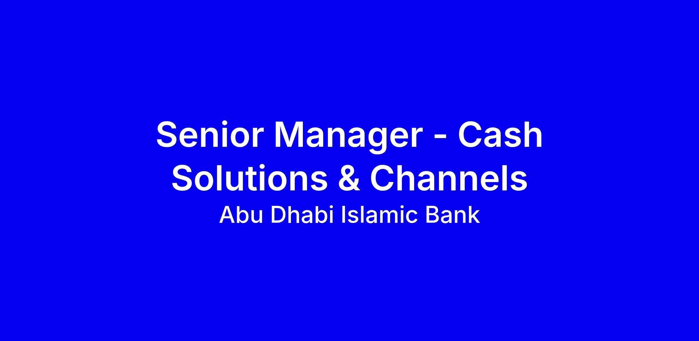 Abu Dhabi Islamic Bank seeks a Senior Manager for Cash Solutions & Channels to lead end-to-end development, commercialization, and delivery of cash management products and digital channels across the UAE and IBG. The role emphasizes Shariah-compliant design, seamless channel integration, and revenue growth, while maintaining regulatory compliance and operational resilience. You will own the product roadmap, oversee onboarding and integrations, and partner with IT, legal, Sharia, and sales to deliver high-impact client solutions and strong KPIs. To apply, tailor your resume to show cash product rollouts with measurable revenue gains, cross-border and API/H2H/SWIFT experience, and regional rollout success, plus clear channel vision.