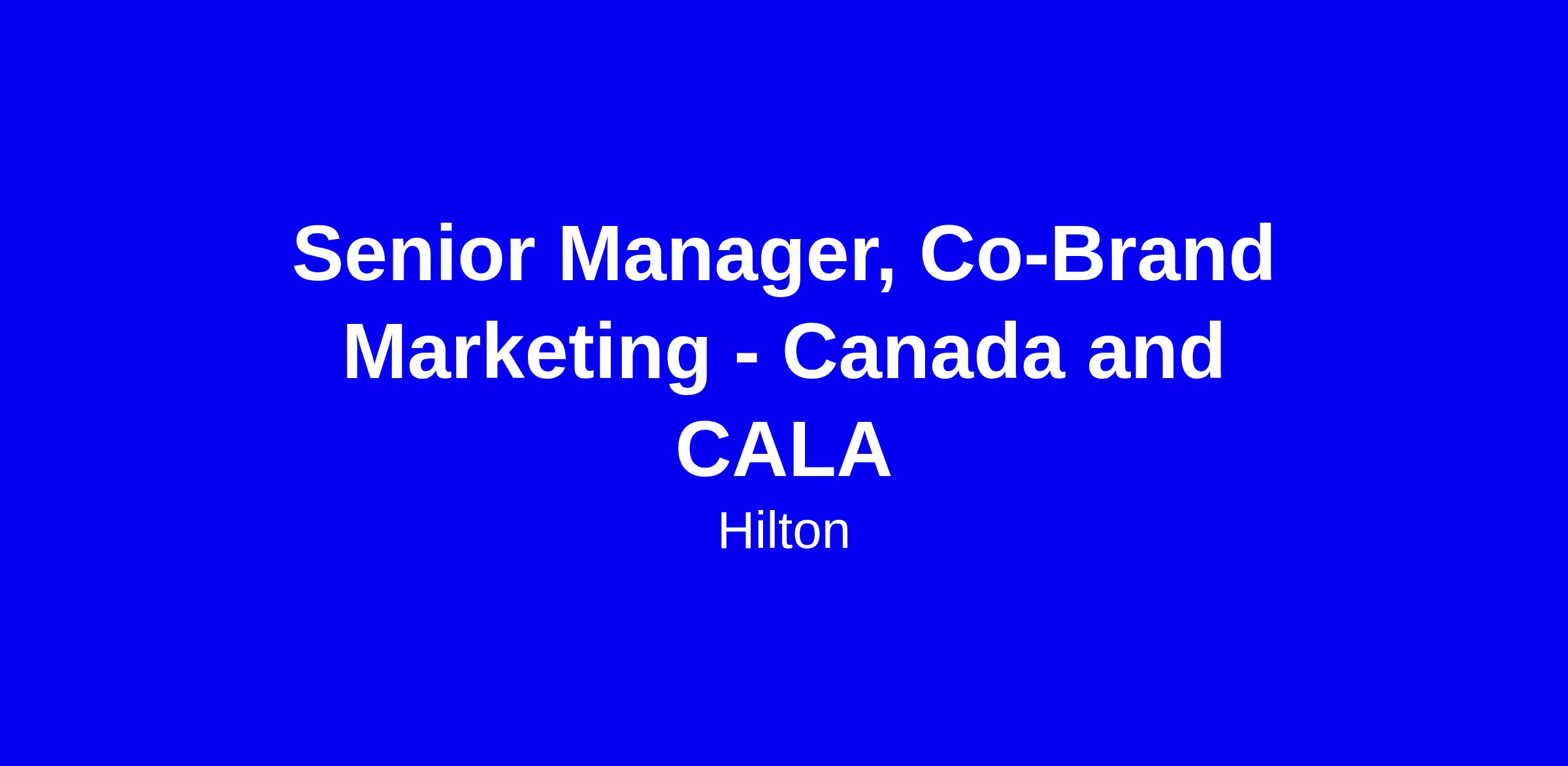 Hilton is seeking a Senior Manager, Co-brand Marketing for Canada and CALA, based at the McLean corporate office. You will own the marketing strategy and channels for co-brand partnerships, developing plans, overseeing acquisition, and optimizing activation across digital and on-property channels. You’ll define audience segments, negotiate offers, lead creative development across the lifecycle, and partner with card issuers, regional marketing, loyalty and analytics teams to hit ROI and budget targets. Ideal candidates have seven plus years in partnerships and marketing, fluent English with Spanish preferred, and 10–15 percent travel. To apply, tailor your resume with results, share campaign examples, highlight leadership, and connect your experience to Canada and CALA growth goals.
