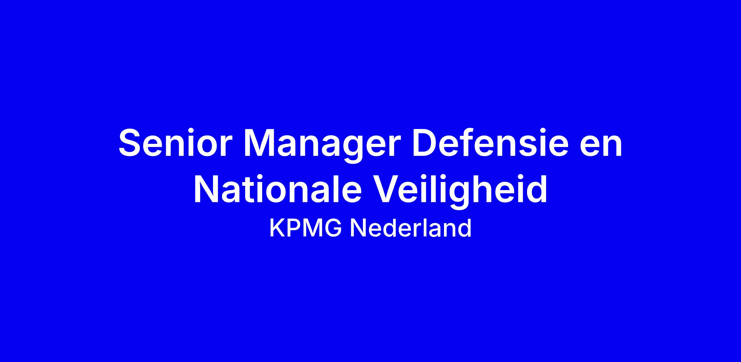 KPMG Nederland zoekt een Senior Manager Defensie en Nationale Veiligheid voor een fulltime, onsite positie in Amstelveen. Je leidt strategische programma’s binnen defensie en het bredere veiligheidsdomein, fungeert als trusted advisor voor ambtenaren en bestuurders, en stuurt meerdere projectteams aan terwijl je bijdraagt aan de groei van de Public Sector praktijk met een duidelijke focus op Defensie. Je bouwt een sterk netwerk op, verwerft opdrachten, ontwikkelt proposities en levert offertes. Daarnaast ontwikkel je thought leadership over thema’s als hybride dreigingen en ketensamenwerking en werk je volgens de transformationele aanpak van KPMG. Vereisten: WO, minimaal 8 jaar relevante ervaring in defensie en veiligheidsdomein, netwerk op C-level niveau, strategisch inzicht en politieke sensitiviteit. Solliciteren kan tot vrijdag 20 februari. Tips: laat concrete resultaten zien, benadruk je vermogen tot strategie en uitvoering, en geef voorbeelden van succesvol stakeholdermanagement en acquisitie.