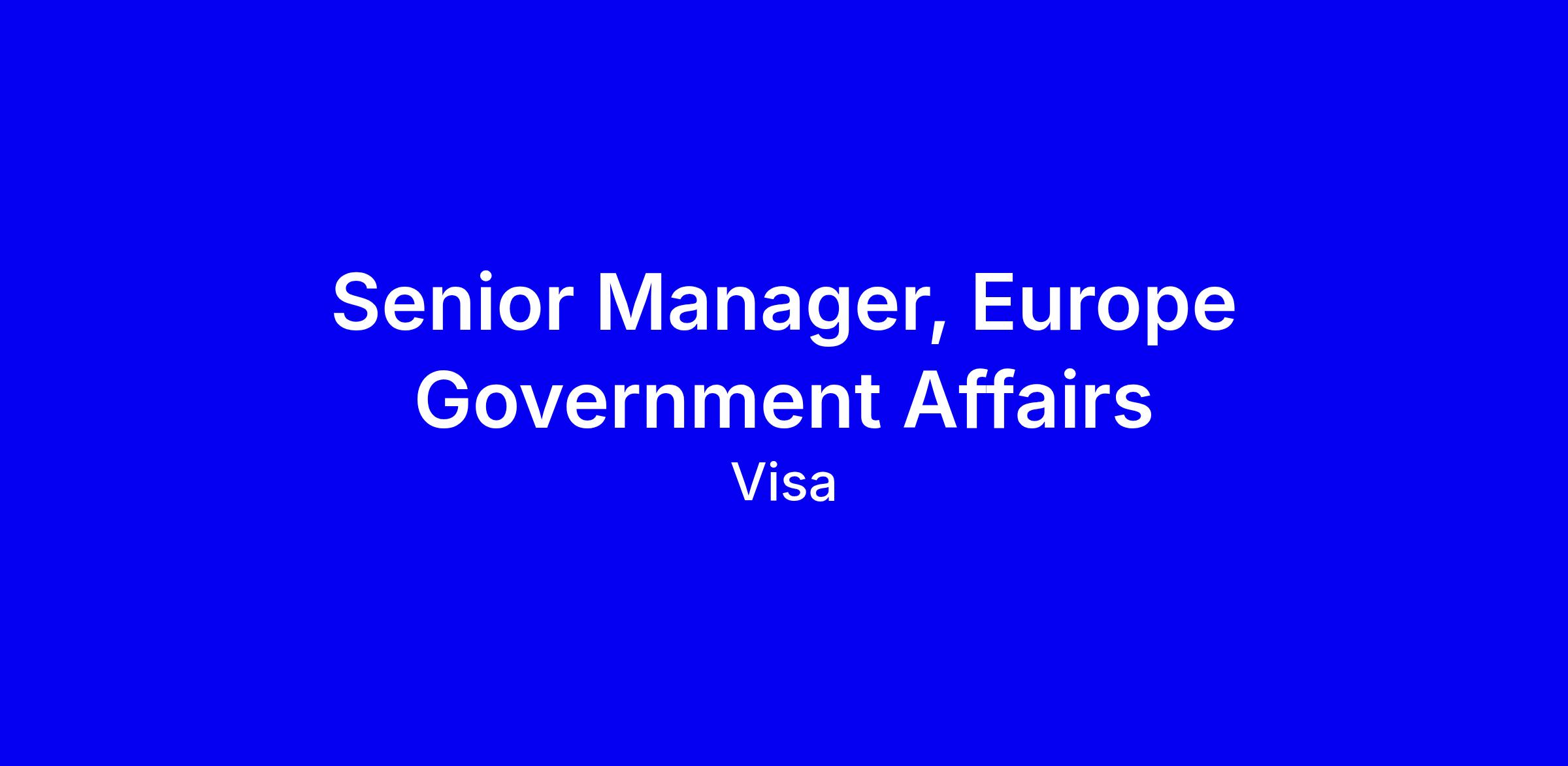 Visa is hiring a Senior Manager, Netherlands Government Affairs, based in Amsterdam with a hybrid schedule and occasional travel. This role leads government engagement across Europe, collaborating closely with GA market leads and the Brussels team to advance the Visa 2030 strategy, influence policy in the right direction, and support executive engagement with governments. You will cultivate trusted relationships with regulators and policymakers, safeguard the right to play, and drive meaningful client value through strategic engagement. Ideal candidates have 9+ years with a bachelor or 7+ with an advanced degree, fluent Dutch and English (German a plus), and strong senior stakeholder management. To apply, tailor your CV to policy advocacy outcomes, quantify impact, and demonstrate cross border collaboration and independent, proactive leadership.