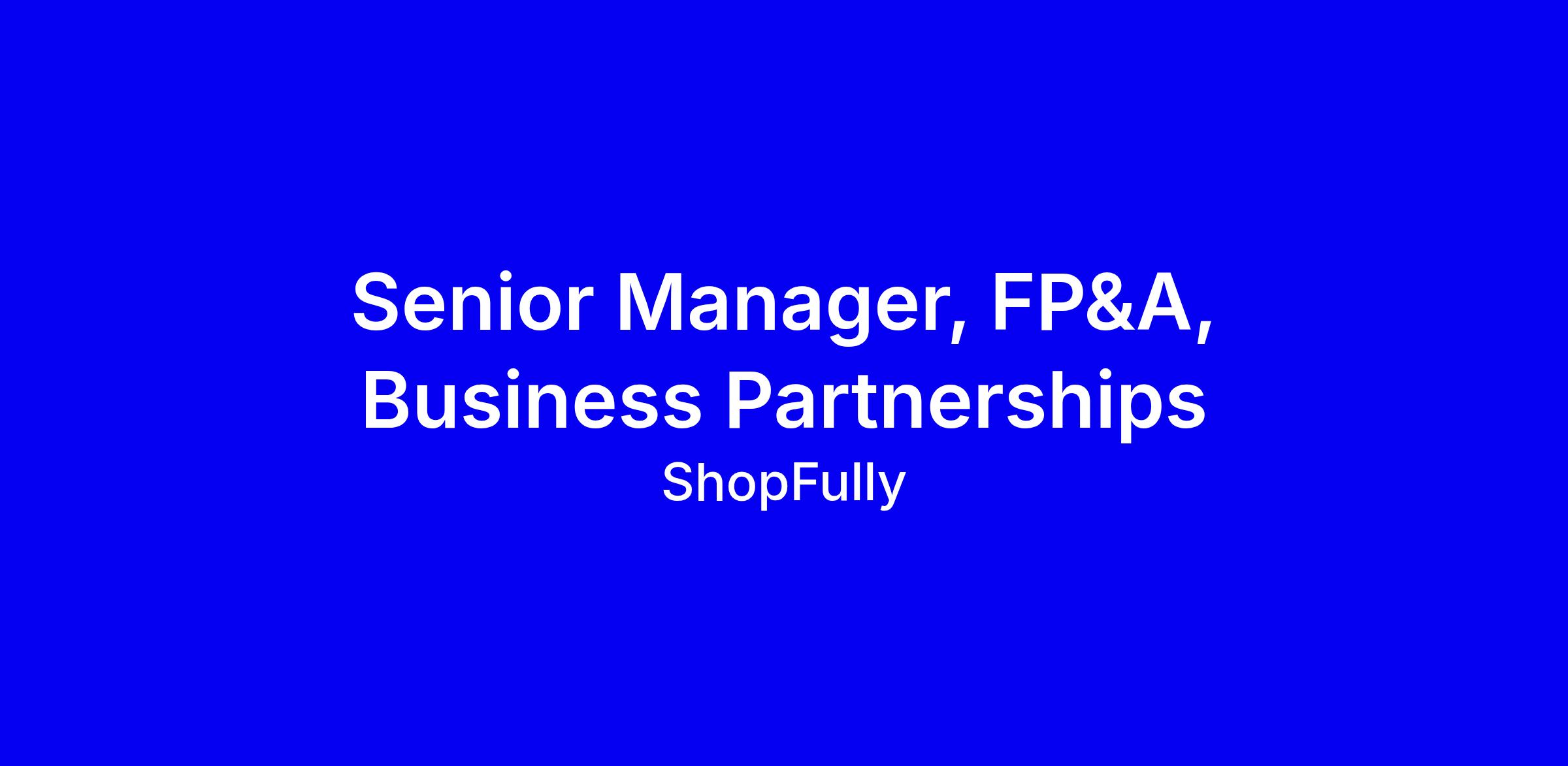 We are looking for a Senior Manager, FP&A, Business Partnerships, who will join our Financial Planning & Analysis (FP&A) team.
