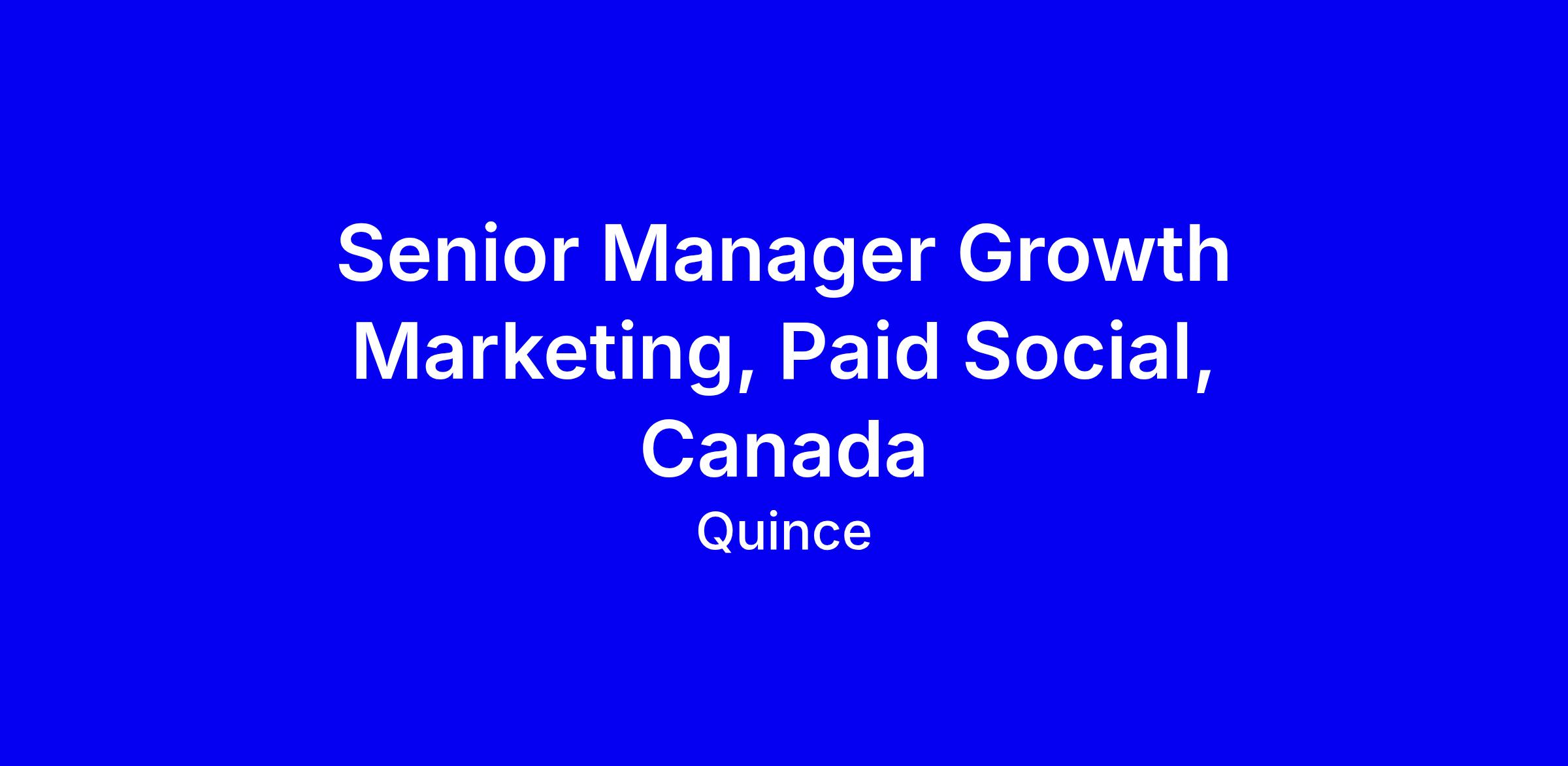 Quince is seeking a Senior Manager Growth Marketing, Paid Social to build Canada’s paid social program from 0 to 1, onsite in Toronto, full time. You will own the end to end performance strategy across Meta, AppLovin, TikTok and more, drive new customer acquisition and retargeting with strong ROAS, and partner with creative and ops teams to test, learn and optimize. The ideal candidate has 6+ years of hands on Meta at scale with direct budget ownership, deep analytical instincts, and a bias for fast data driven decisions in a rapidly changing environment. Preference for AppLovin and TikTok; strong Sheets and tools like Sigma or Looker. CAD 130k-150k base plus bonus and equity; to apply, highlight measurable impact and cross functional wins that show you can scale Canada in a mission driven, fast paced team.