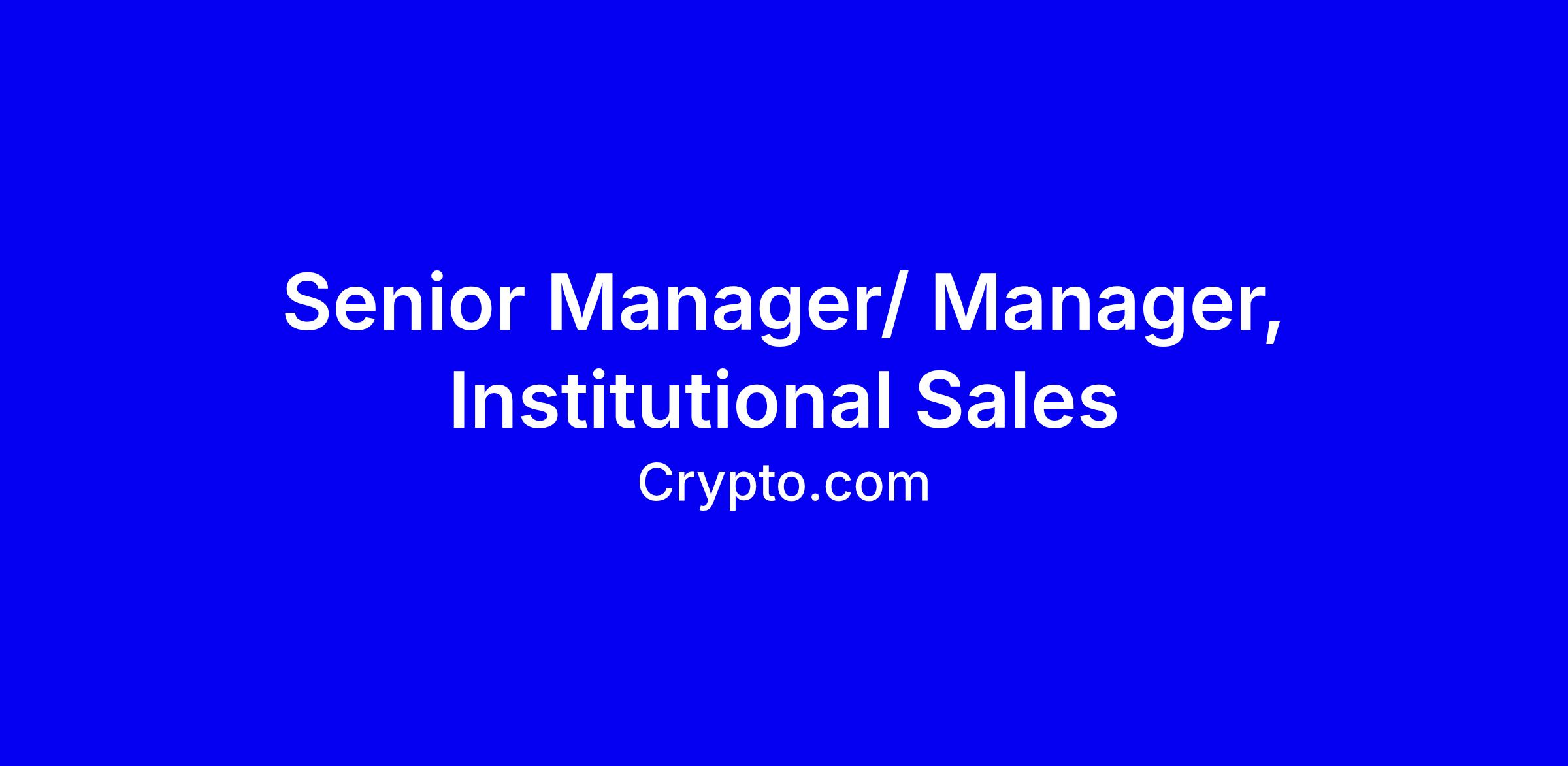 - As a [Senior] Manager of Institutional Sales, you will be a key driver of Crypto.com’s institutional growth. In a rapidly evolving market, you will be on the front lines, identifying and capturing opportunities across a diverse global client landscape.
