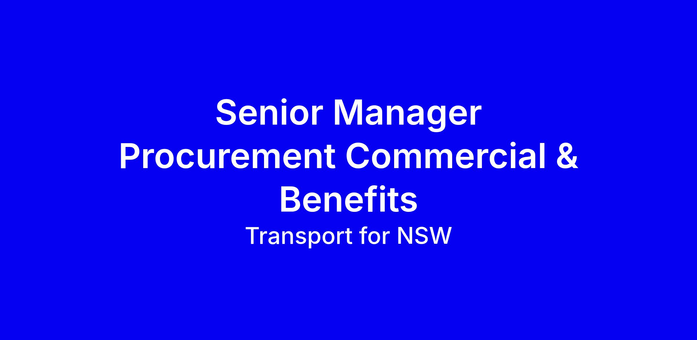 Transport for NSW is leading a bold procurement transformation and seeks a Senior Manager Procurement Commercial & Benefits to anchor the new centralised Procurement branch, overseeing a commercial and benefits realisation strategy across NSW’s largest infrastructure portfolio. You’ll shape governance, drive benefits tracking and reporting, lead strategic negotiations, manage complex supplier relationships including local and Aboriginal businesses, and uplift capability while embedding commercial excellence and regulatory compliance. To stand out, show proven government or large-organisation experience delivering measurable value, strong governance, risk management and a track record of high performance. Tailor your CV to benefits metrics and leadership impact, and review the role description and information pack before applying. Apply by 11:59 PM 4 March 2026. For details contact Effie Rogaris.