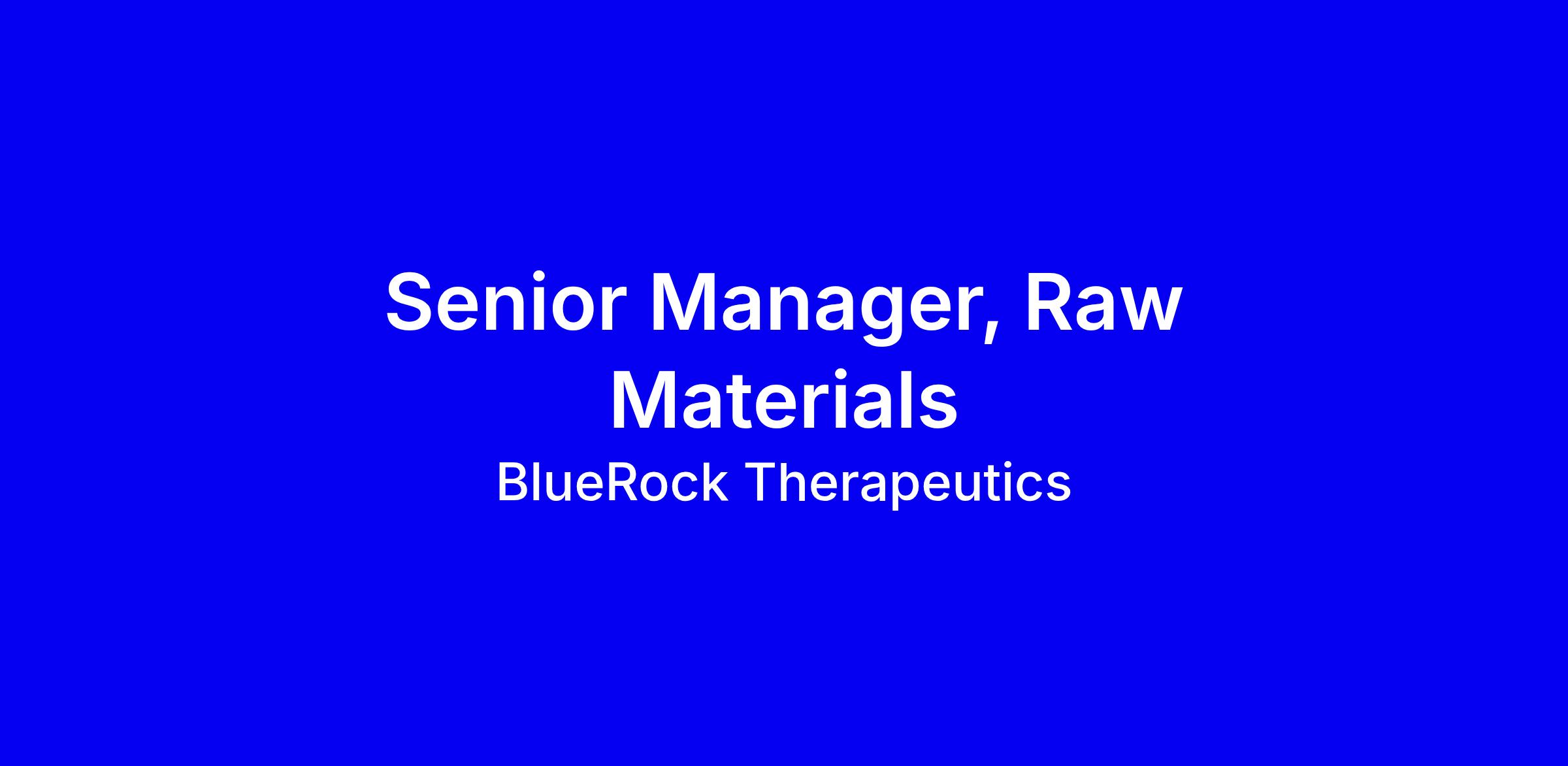 Who is BlueRock?BlueRock Therapeutics LP is a clinical stage cell therapy harnessing the power of cell therapy to create a pipeline of new medicines for people suffering from neurological and ophthalmic diseases. Two of our novel investigational cell therapies, bemdaneprocel (BRT-DA01) for the treatment of Parkinson’s disease and OpCT-001 for the treatment of primary photoreceptor diseases are clinical stage programs. BlueRock was founded in 2016 as a joint venture of Versant Ventures and Leaps by Bayer. Our culture is defined by the courage to persist regardless of the challenge, the urgency to transform medicine and deliver hope, integrity guided by mission, and community-mindedness with the understanding that we are all part of something bigger than ourselves.What Are We Doing?Our foundational science harnesses the ability to create and then direct the differentiation of universal pluripotent stem cells into authentic, functional cells that can be used as allogeneic cellular therapies to treat a broad array of diseases. We can also further engineer these cells, enabling them to produce enzymes, antibodies, and other proteins for additional therapeutic benefit. We are passionate about delivering on the promise of cellular and gene therapy, shaping the future of cellular medicine, and delivering new therapies to millions of patients with treatment options. We are seeking individuals who are collaborative, thrive in a fun and dynamic culture, and are steadfast in the commitment to advance cutting-edge cellular therapies to impact patients’ lives.Based in Toronto, Ontario or Cambridge, MA, USA, the Senior Manager of Raw Materials will lead the technical oversight and lifecycle management of raw materials used in our internal and externally partnered pipeline programs. This role ensures materials are fit‑for‑purpose, phase appropriate, and consistently available to support research, process development, and clinical cell therapy operations.