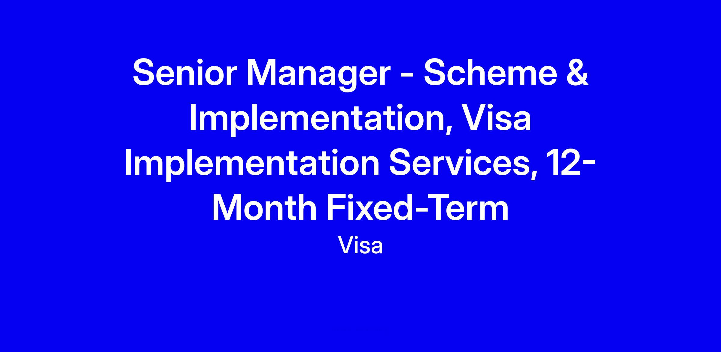 Visa is seeking a Senior Manager for Scheme & Implementation in Sydney on a 12-month fixed-term, full-time contract with a hybrid work arrangement and days in the office to be confirmed. You will define and operationalise scheme management frameworks, govern OKRs and incentive tracking, and shape strategic product roadmaps while coordinating portfolio migrations. The role is a trusted advisor between client teams, vendors and Visa delivery units, driving cross-functional decision making and ensuring governance, operations and technology alignment. For applicants, emphasize 8+ years in financial services or payments, proven cross-functional leadership, migration delivery and governance expertise, and any PMP or PRINCE2 qualifications. Provide concrete, quantified outcomes and ready examples of stakeholder engagement and collaboration.