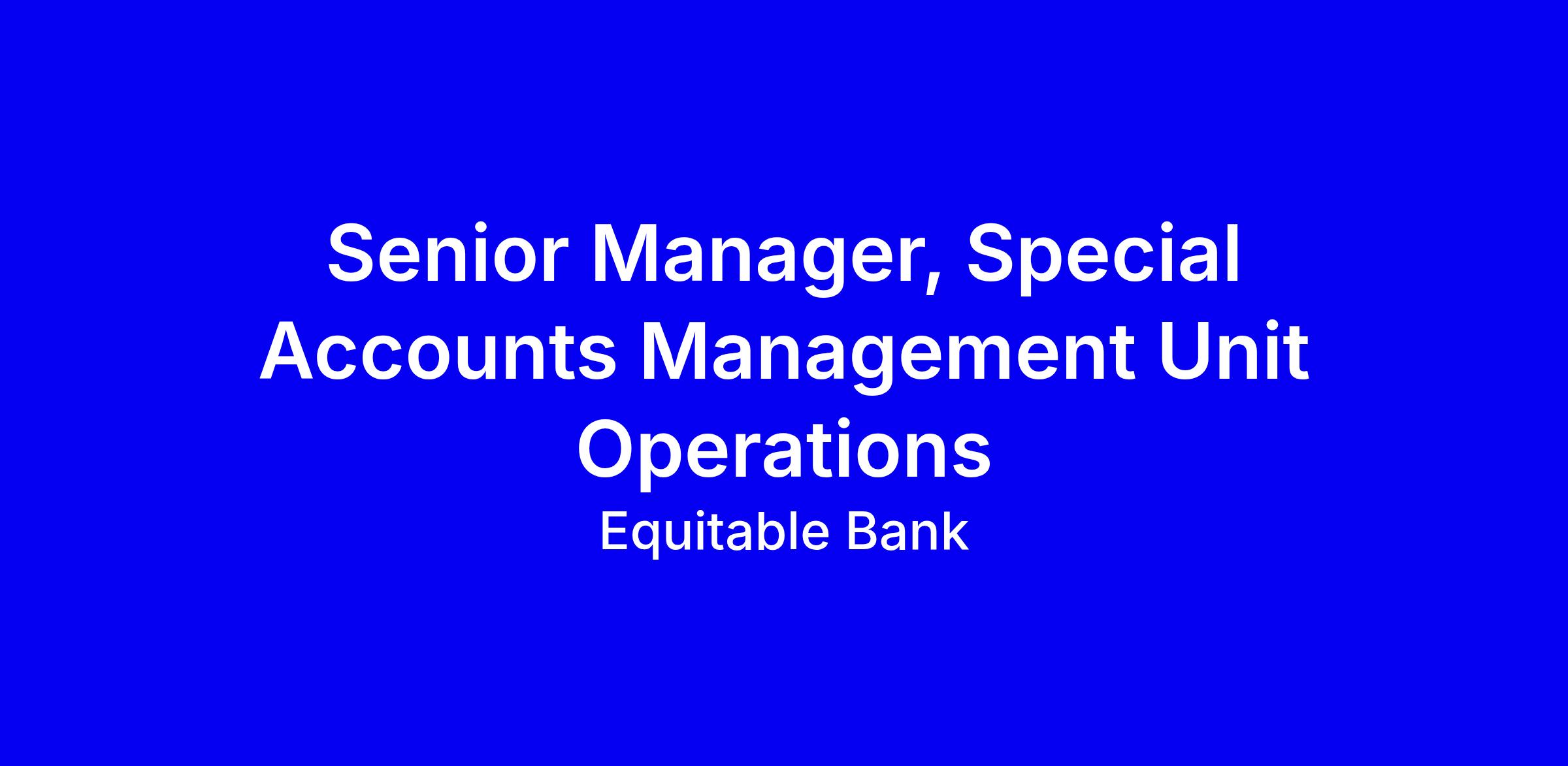 Equitable Bank is seeking a Senior Manager, Special Accounts Management Unit Operations to design and lead SAMU's framework and controls for defaulted and high risk lending, ensuring scalability, IFRS 9 compliance, and alignment with risk, finance, and operations. The role goes beyond routine work, shaping workflows, escalation, and remediation strategies, including legal action coordination. Ideal candidates have 5 to 7 years in commercial mortgage lending or restructuring, strong credit analysis and financial modeling, and ability to influence senior stakeholders. To apply, tailor your resume to SAMU priorities, quantify improvements, show leadership, and note readiness for a hybrid Toronto role at 2200-25 Ontario Street; please mention consent for background and credit checks and accommodation needs.