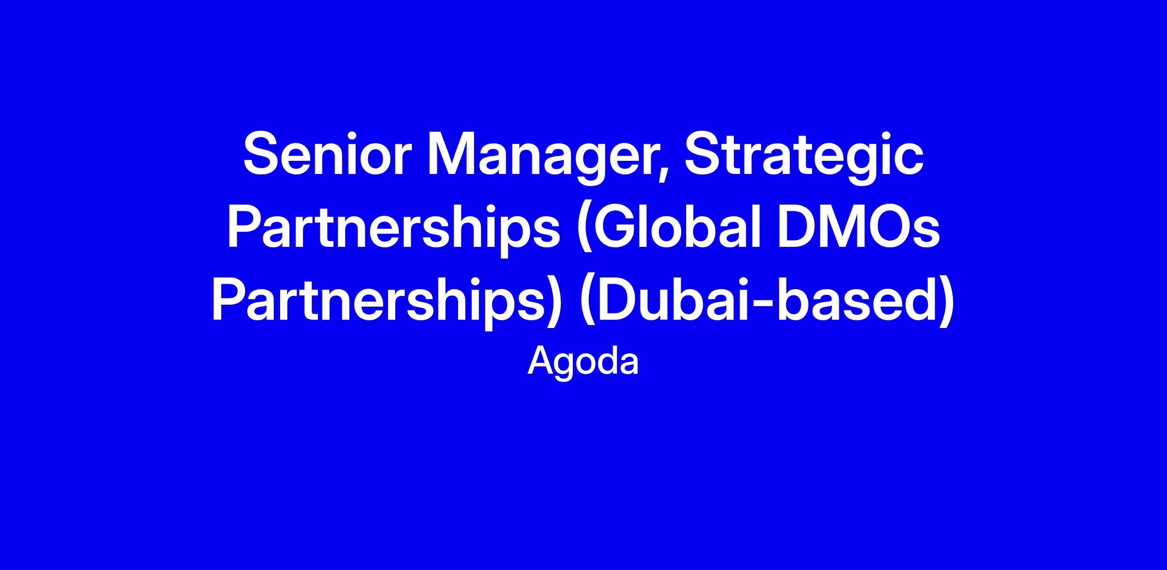 Agoda is seeking a Senior Manager, Strategic Partnerships for Global DMOs Partnerships, based in Dubai and onsite. In this role you’ll own end to end DMO accounts, design and optimize campaigns, and drive destination growth by coordinating with Marketing, Product, Legal, Finance and other teams. The ideal candidate has 5 to 10 years of account or program management experience, a proven track record in navigating complex sales cycles including RFPs, government processes and contract negotiations, and a data driven mindset with the ability to tell stories with data and even write SQL queries. Arabic or Asian language skills are a plus. To apply, tailor your resume to show ROI and tangible campaign wins across stakeholders.