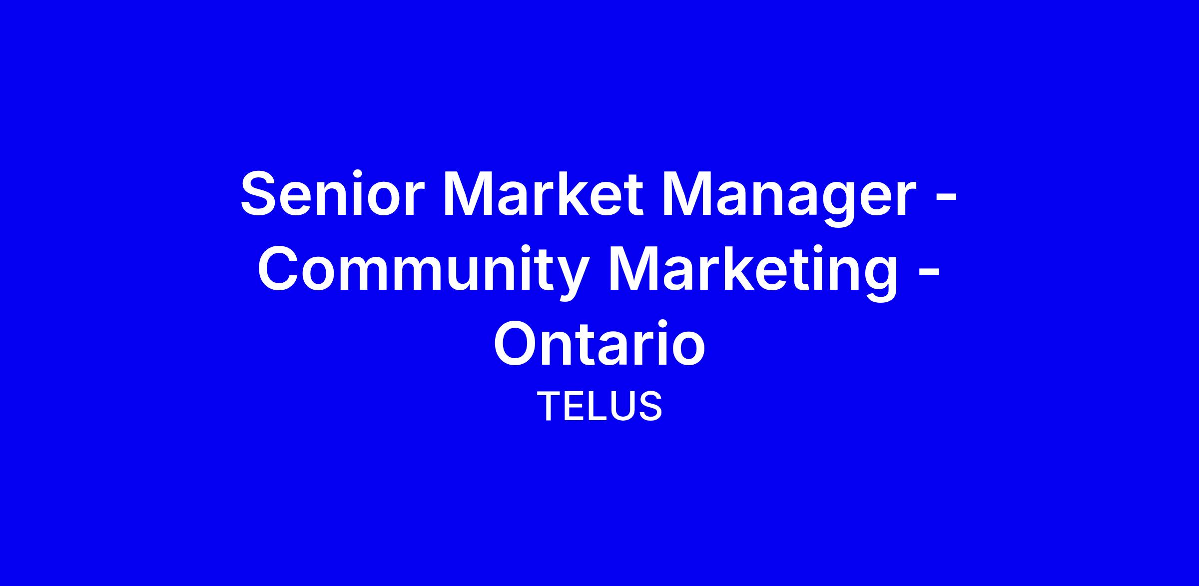 TELUS is hiring a Senior Marketing Manager for Community Marketing in Ontario to lead localized 360 campaigns that unite wireline and wireless with strong partnerships, community engagement, and cross departmental collaboration. You’ll own market selection, local activation, events, influencer and social strategies, and an end to end customer journey for communities, backed by 7 to 10 years in strategic marketing or sales channel management and at least 3 years in leadership. The role requires deep Ontario and Quebec market knowledge, financial and analytics fluency, and a proven ability to drive acquisition through cross functional GTM initiatives. When applying, tailor your resume to quantify local wins, highlight leadership in partnerships, and show bilingual capability if possible, aligning with TELUS growth culture and customer focus.